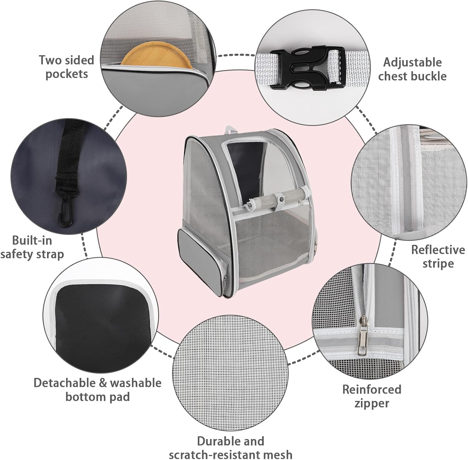 • Ventilated Mesh and Comfortable: Three-sided PVC mesh design ensures excellent air circulation and visibility, you can clearly view the status of pets inside the bag, and pets can also observe the outside. And this cat carrier backpack is firmly structured, providing ample room for your pet to move around