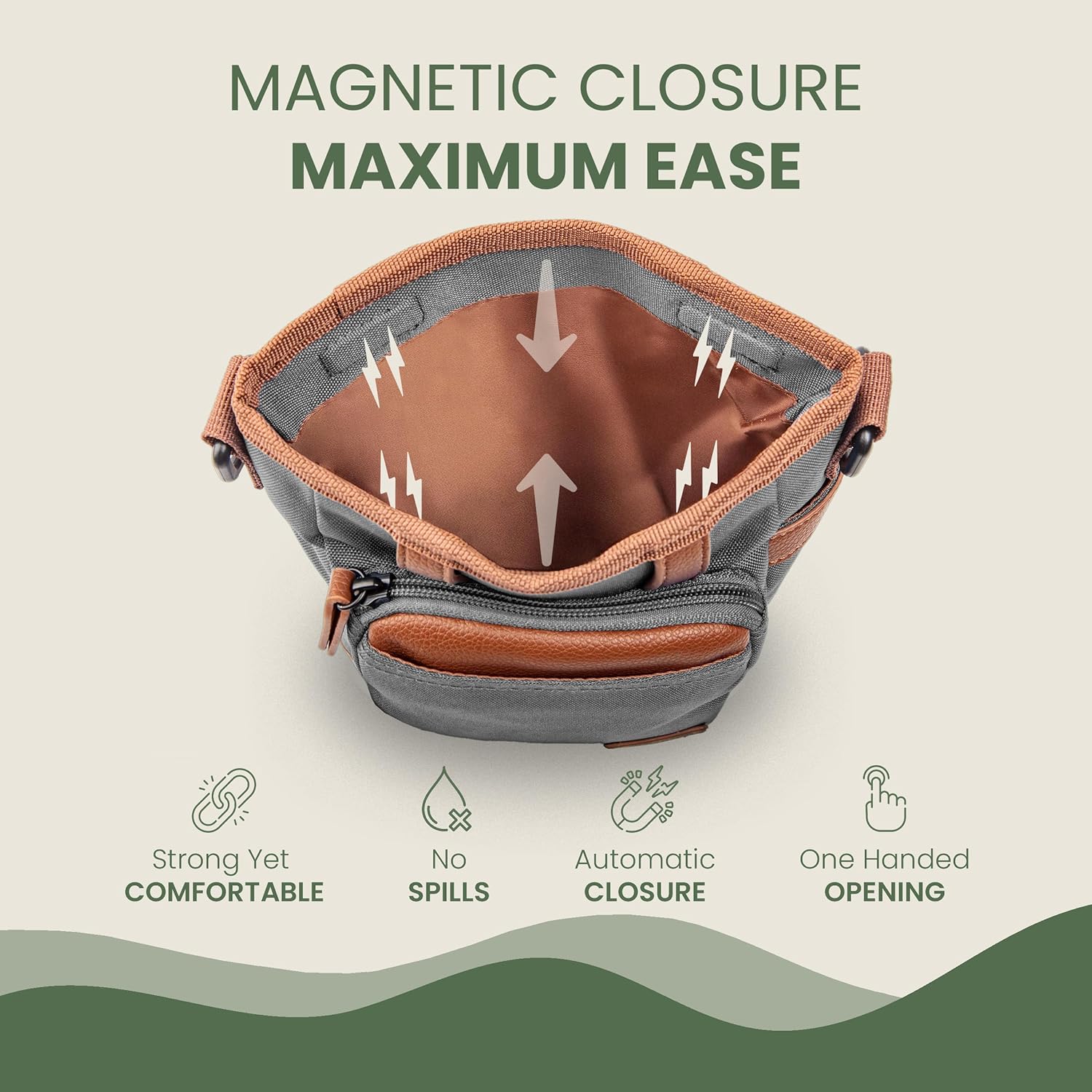 • 【EFFORTLESS ONE-HANDED ACCESS】 - The magnetic closure of this puppy treat pouch ensures fast access to treats, allowing you to reward your dog effortlessly during training sessions or walks without breaking the flow.