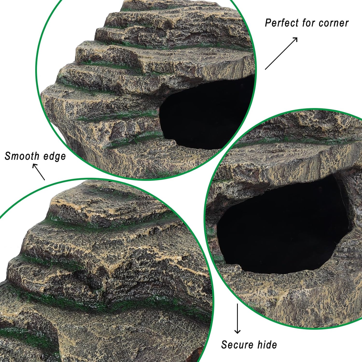 • MULTI-FUNCTIONAL: The bearded dragon accessories ideal for for reptiles, amphibians, and fish. Such as glo fish, betta, cichlid, pleco, hermit crabs, snack, beaded dragon, ball python, scorpion, frog, wild or pet toads ect. Create a stimulating environment. Perfect for reptile tank accessories and large reptile hide,tortoise habitat accessories, it offers a secure and comfortable hide.