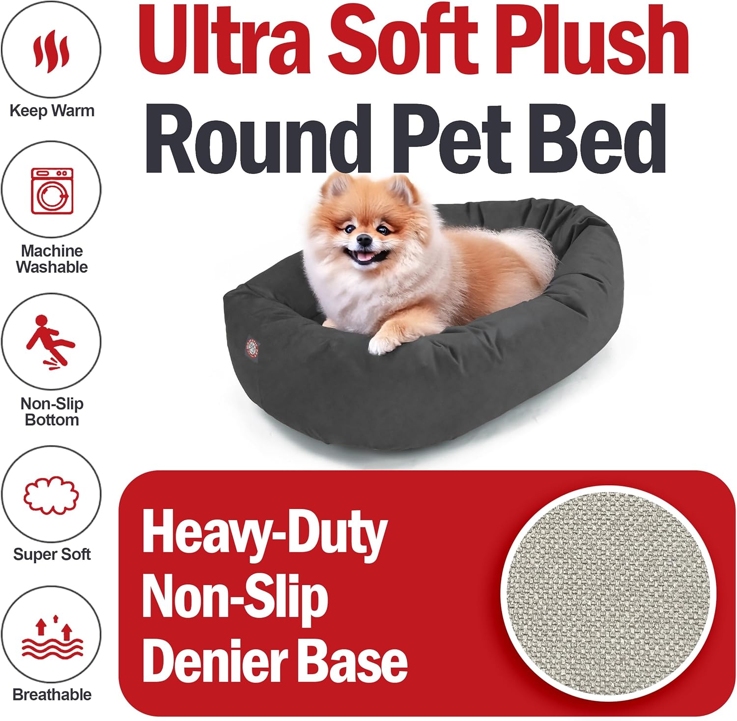 Majestic Pet 24 Inch Suede Shredded Memory Foam Mix Calming Small Dog Bed Washable 24 x 19 x 7 (Inch) - Cozy Soft Round Donut Dog Bed with Spine for Head Support - Pet Bed Gray