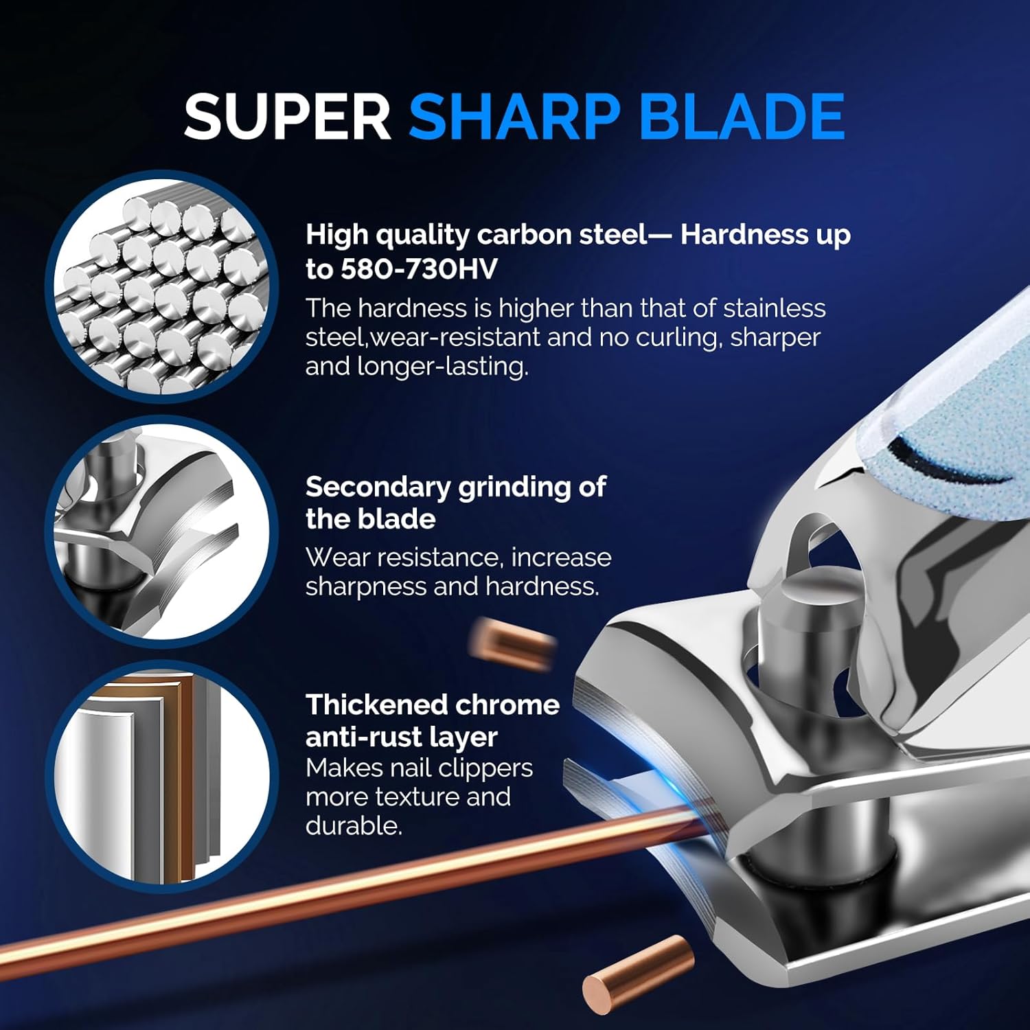 • High Hardness and Sharpness: MelodySusie toenail clippers are made of high-quality carbon steel and stainless steel, which are super sharp and wear-resistant, and can cut nails without leaving burrs. The blade is fully electroplated, so there is no need to worry about the jaws rusting.