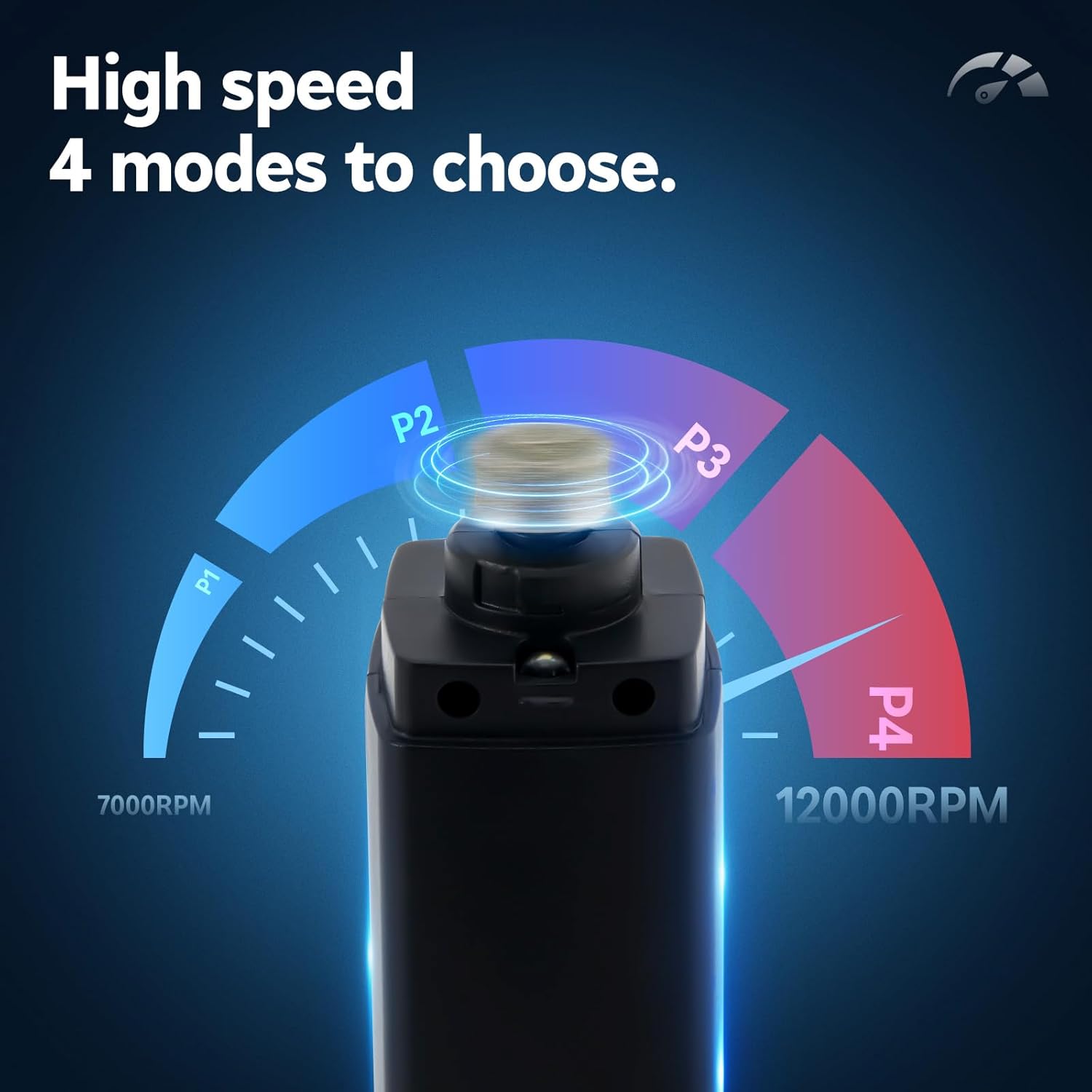 • Practical LCD Screen Display: The nail grinder has an LCD screen, which adds a sense of technology and improves the overall quality of the product. It allows you to clearly see the current working status, such as speed levels, battery power. Intuitive and simple operation interface,making it easier to use.Users can adjust settings according to their needs.