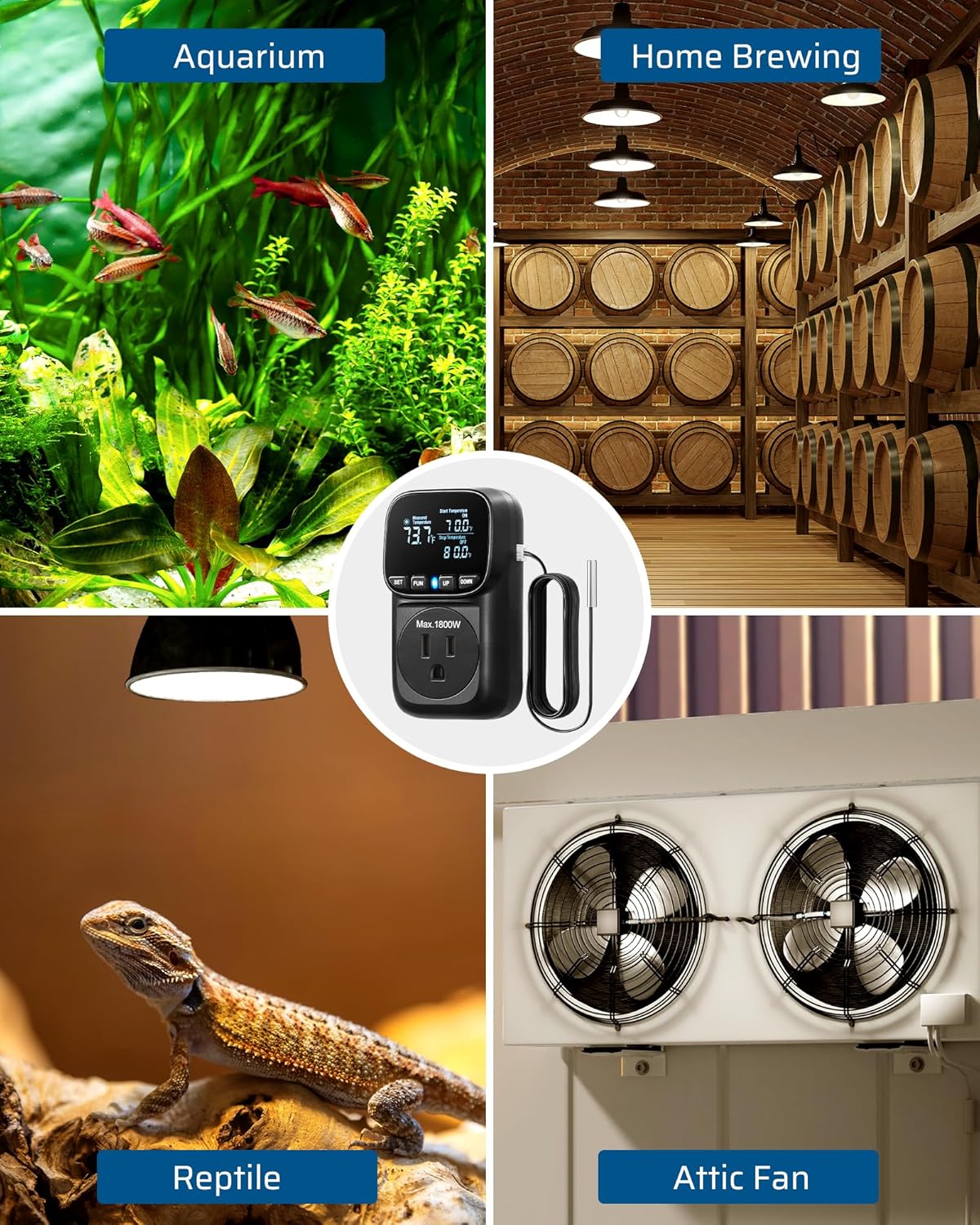 • [Versatile Applications] Temperature controller timer designed for incubators, reptile rooms, greenhouses, and home brewing; not only effectively maintains a constant indoor temperature, promoting the healthy growth of organisms or the brewing processes but also prevents freezing in well house