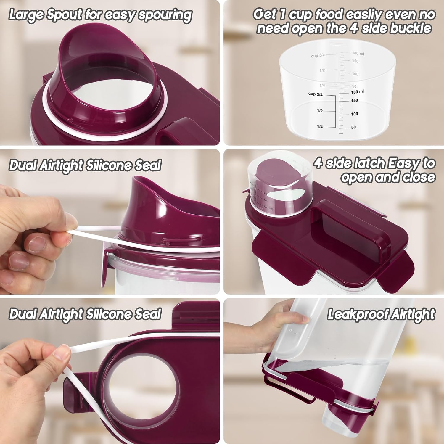 • FRESH SEALED CONTAINER : The dog food storage container is double-sealed with press-type snaps and silicone sealing gasket. The slot design keeps the food from moisture. There are four snaps on the side of the sealing cover, which provides excellent sealing and ensures Food freshness and freedom from moisture, dust and pests.