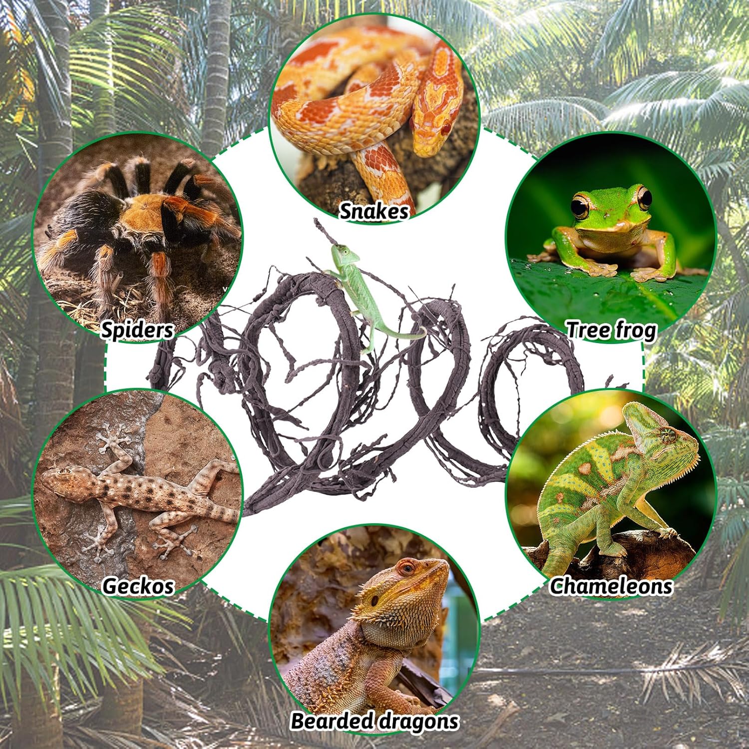 • 2 Packs Include: 1 x large vines for snakes, length 118 inches, diameter 0.4 inches, 1 x Reptile Plant Leaf, length 78 inches. Great for corn snakes, chameleons, frogs, geckos, bearded dragons, ball python, hermit crab, spiders