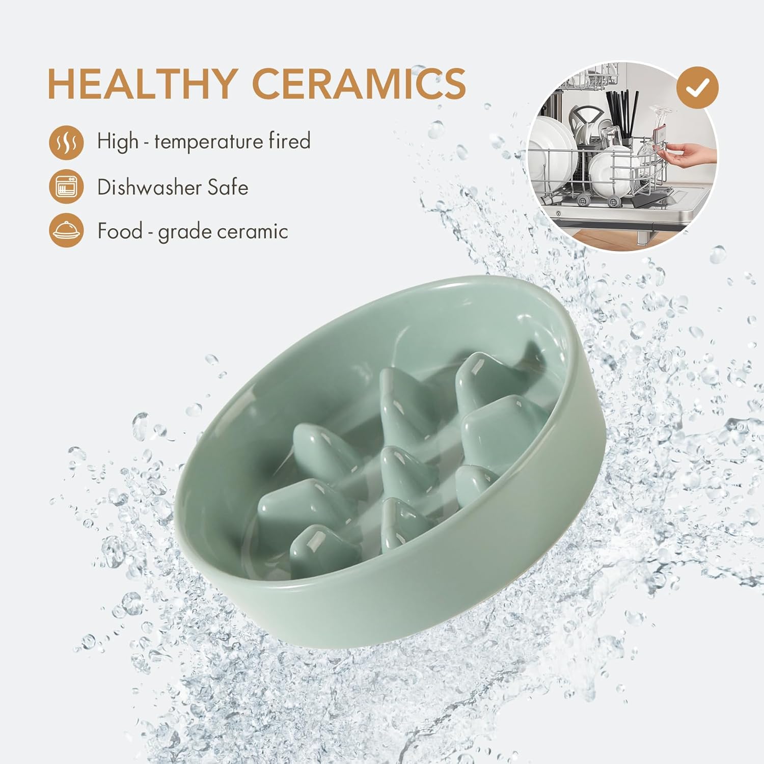 6.1inch Dog Bowl Slow Feeder Ceramic, Slow Pet Food Dish for Small Dog and Cat, Stop Bloat, Preventing Choking(Single Bowl, Beige)