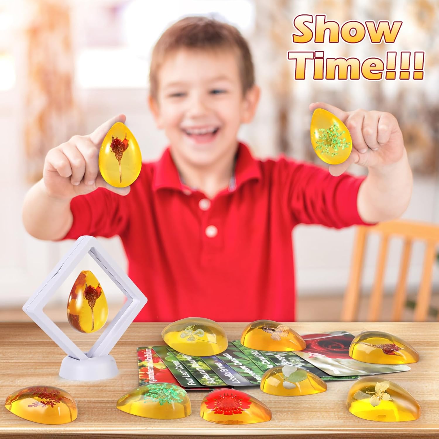 • 【 Learn and Play 】 Each amber is accompanied by an information card, turning this activity into an educational adventure. Children can match the ambers to the cards, learning about different flowers and gemstones. This interactive play promotes cognitive development and a love for the natural world.