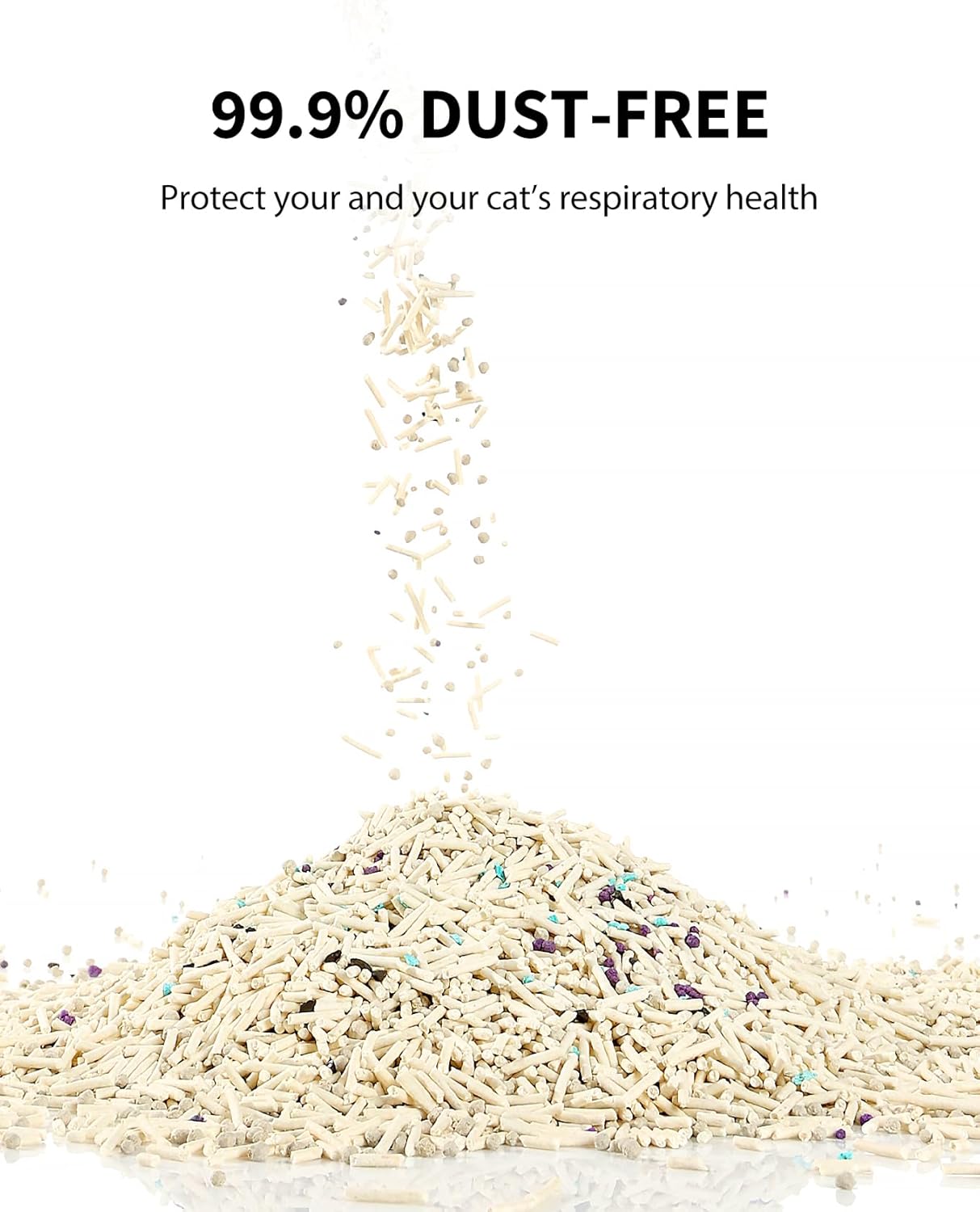 • LOW TRACKING AND DUST FREE: The larger granules of the cat litter reduce tracking by minimizing adherence to your cat's paws, keeping floors clean. Going through advanced 7 stages of dust removal process, this 99.9% dust-free cat litter prevents airborne particles during refills and waste covering, caring for the respiratory health of you and your cats.