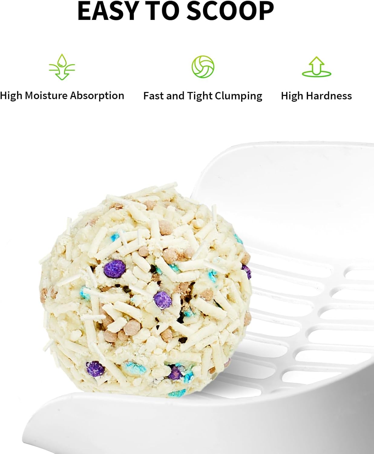 • INSTANT WATER ABSORPTION AND TIGHT CLUMPING: Bentonite litter instantly absorbs liquid from cat feces and urine, crating a cleaner environment for your cats. The cat litter forms solid clumps in just 3 seconds with strong liquid absorbency. Its non-stick feature helps minimize residue on the base, making it easy to scoop.