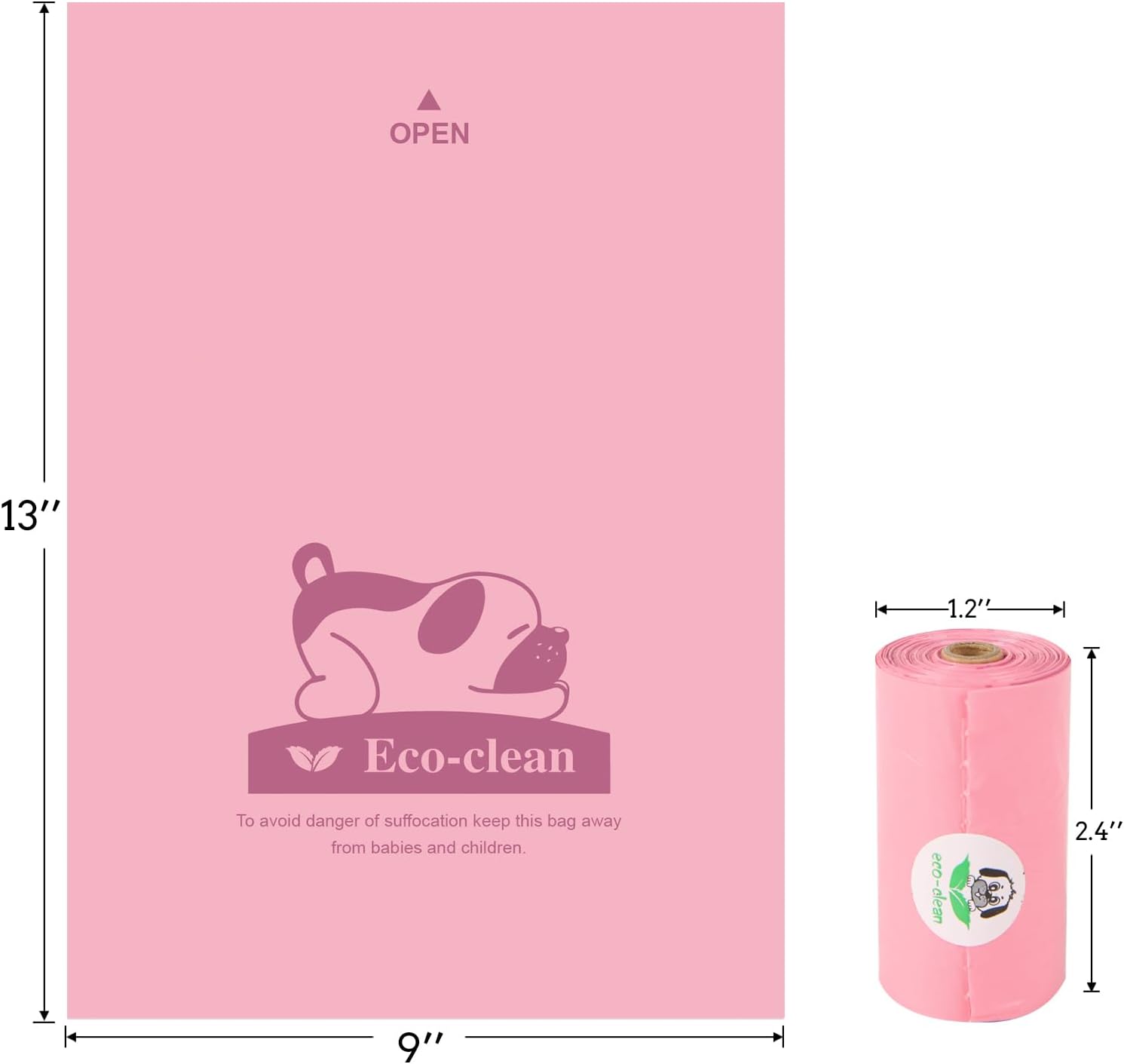• Eco-clean Dog Waste Bags: Unscented, 9”x13” doggy bags keep your hands safe, and odor contained.