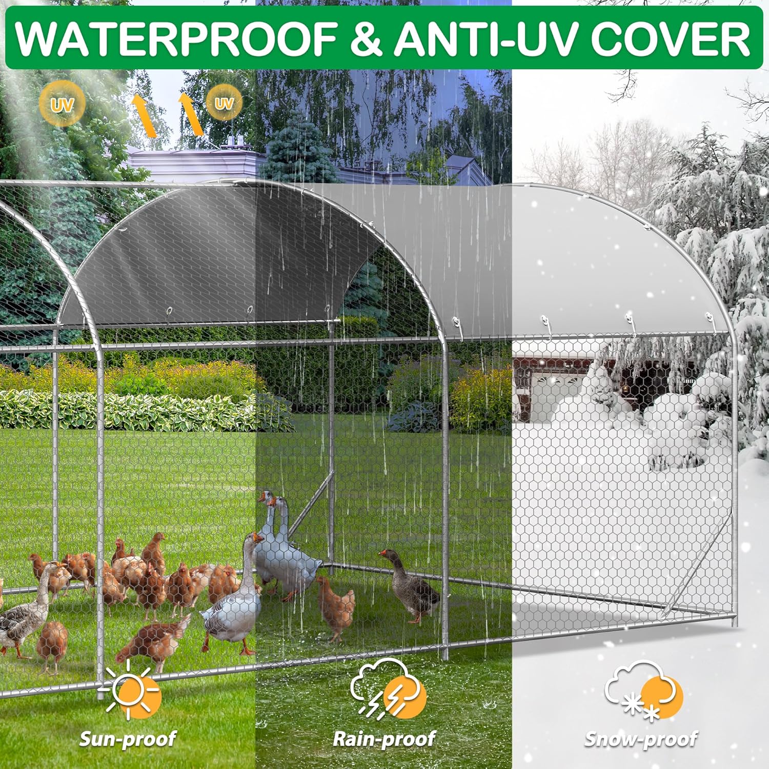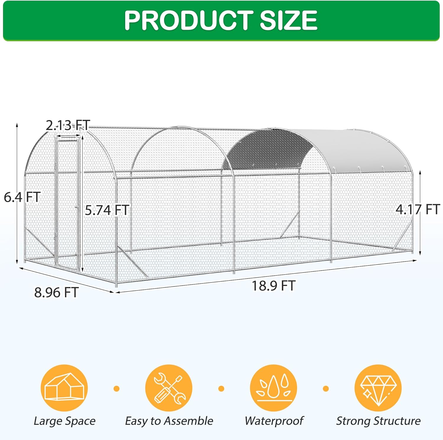 Large Metal Chicken Coop, Walk-in Chicken Run Pen with Waterproof Cover, Dome Roof Poultry Cage for Outdoor, Backyard, Farm (8.96'Wx18.9'Lx6.4'H)