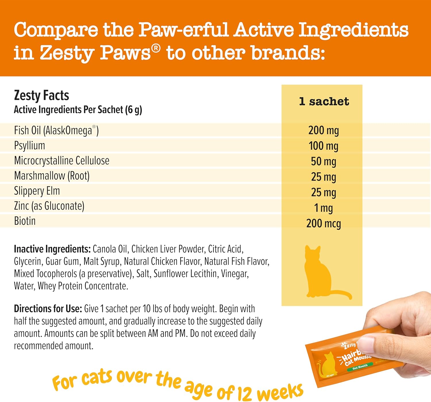 • Put the "Squeeze" on Pesky Hairballs - Zesty Paws Hairball Cat Squeeze Treats provides your pet with a tasty squeeze of ingredients that target hairball formation, gut function, and skin health.