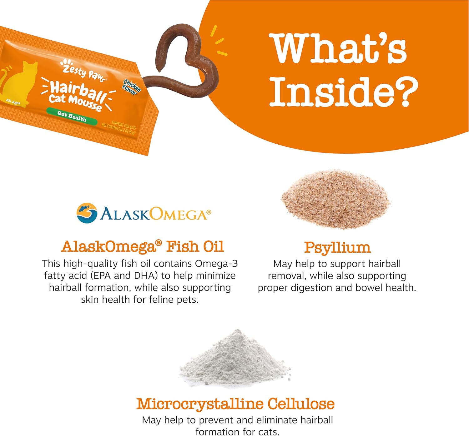 • Furballs? Try This! - These hairball treats for cats include Psyllium and Microcrystalline Cellulose, which work together to help prevent and eliminate hairballs for your kitty companion.