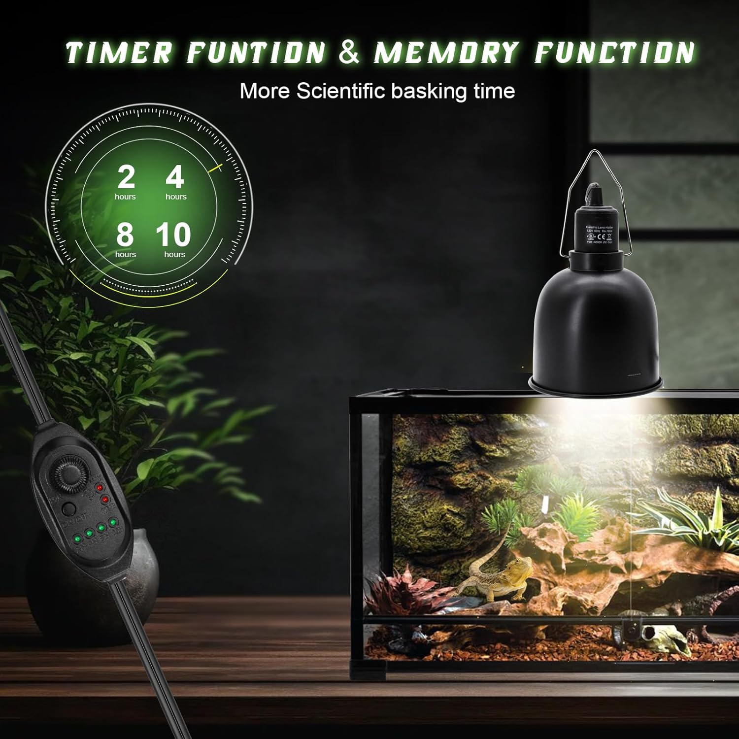 • 2/4/8/10H Timing Mode/24h Cycle Mode: The reptile heat lamp dome with hook has a timer function, set to a specific amount of hours like 2,4,8or 10 hours, very convenient to use. In addition, our deep dome lamp cap have also added 24h cycle function. Timing time is started from the set time, automatic daily cycle.