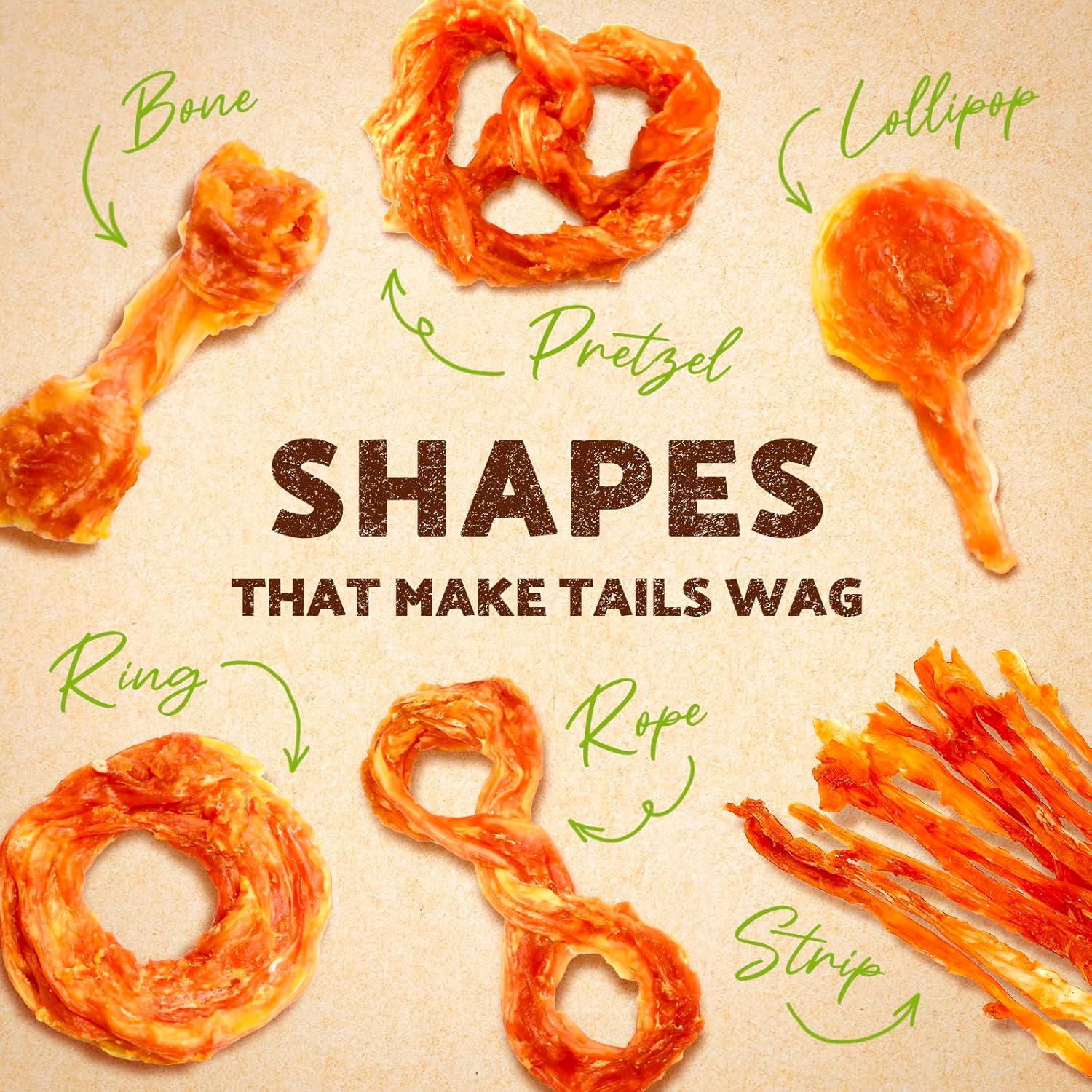 • Hypoallergenic: These chews are rawhide-free, grain-free, and made without common allergens, fillers, or artificial additives โ€” a cleaner, allergy-friendly option for dogs with food sensitivities or intolerances. A trustworthy hypoallergenic dog treat made with simple, wholesome ingredients your pup will love.
