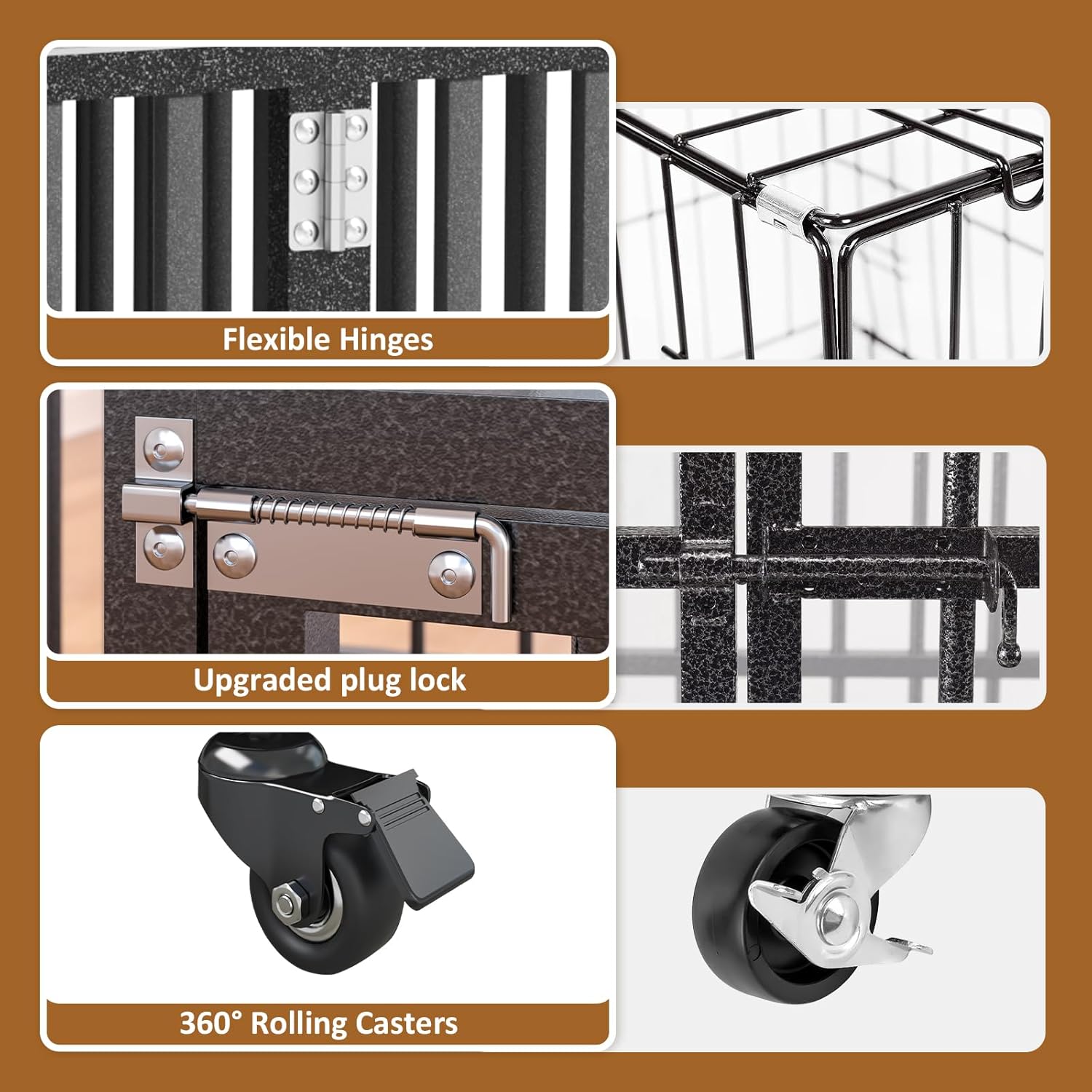 • Superior Mobility and Security: Featuring four 360-degree swivel casters, this extra-large dog kennel delivers exceptional maneuverability throughout your home. Each caster includes a locking mechanism to securely anchor the crate in place. The double upgrade bolt locks enhance security, offering peace of mind for pet owners with anxious dogs. The dual-door design ensures easy access for your pet while promoting convenient interaction and feeding.