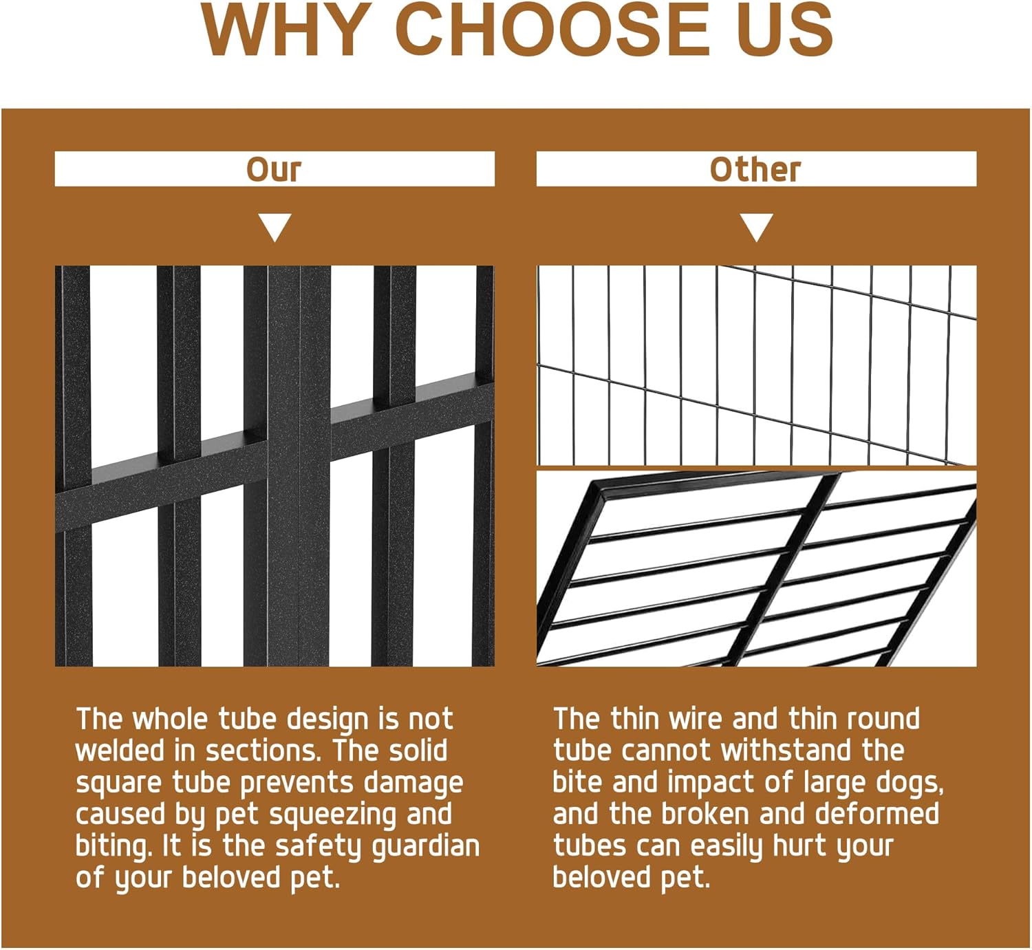 • Premium Materials: Constructed from 20-gauge steel and reinforced with 0.6-inch diameter steel tubes, this 37-inch dog crate offers significantly greater strength and durability compared to traditional wire cages. It provides a secure environment for even the most robust and powerful dogs.