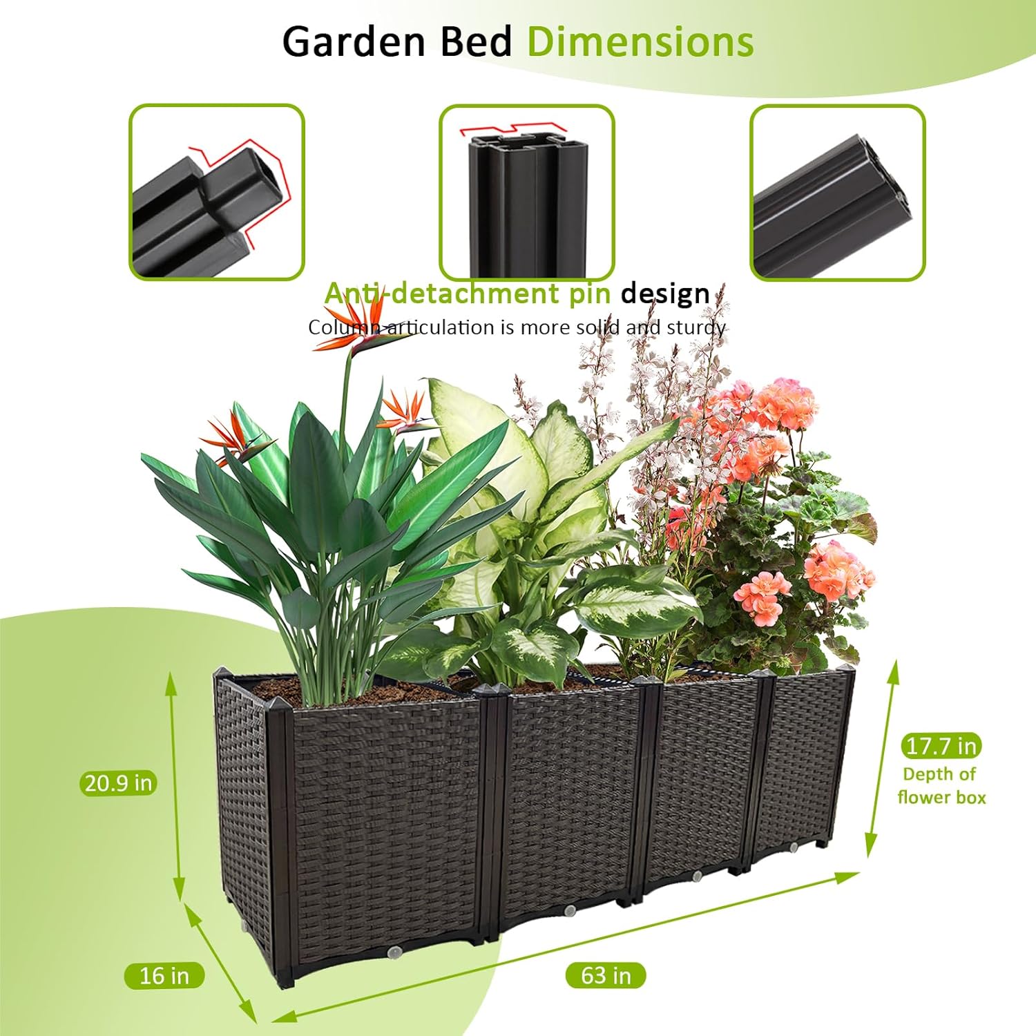 • 🌻【Durable Outdoor Growth Box】Our elevated planter boxes are made of reinforced PP material with a rattan pattern that is lightweight, high load bearing and reusable.