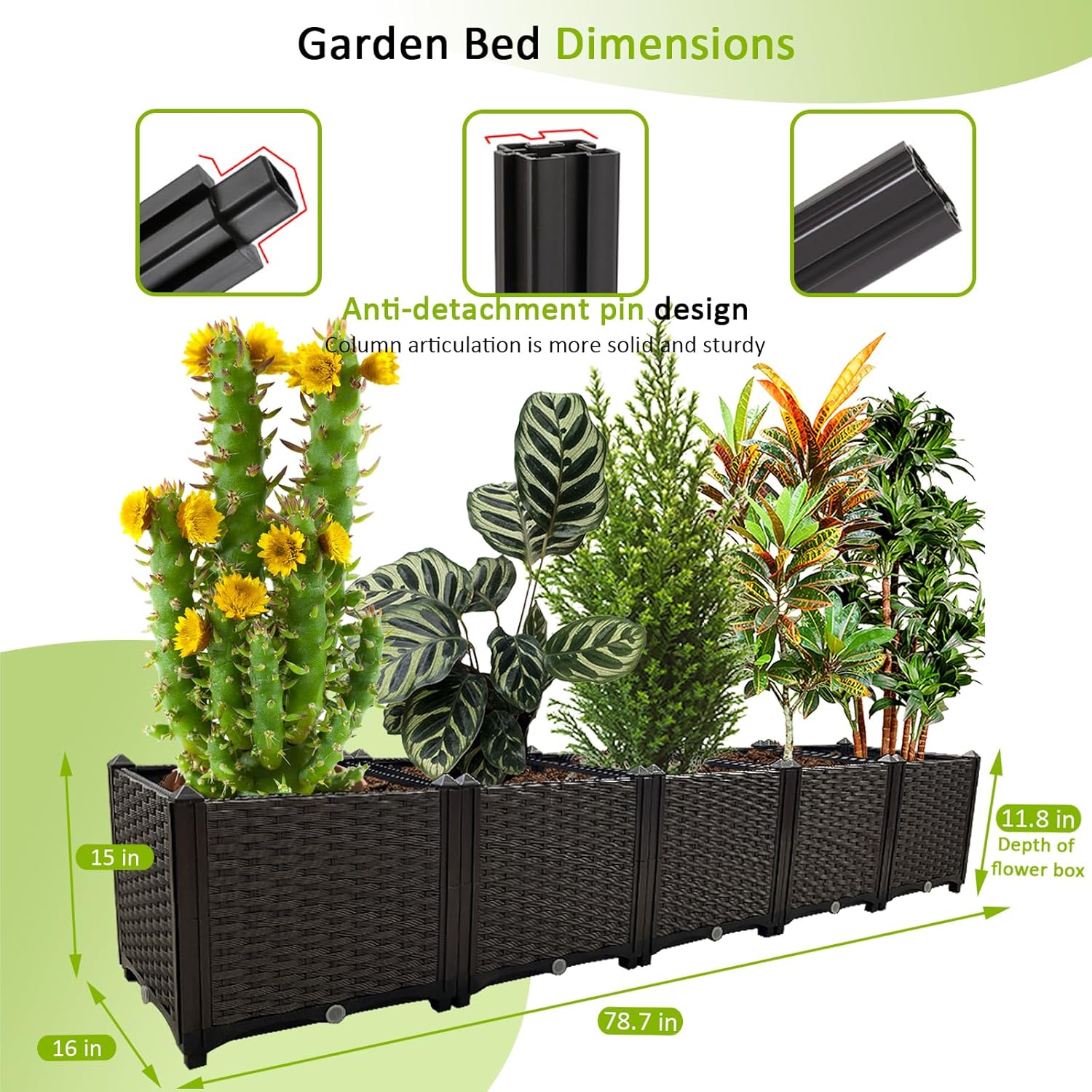 • 🌻【Durable Outdoor Growth Box】Our elevated planter boxes are made of reinforced PP material with a rattan pattern that is lightweight, high load bearing and reusable.