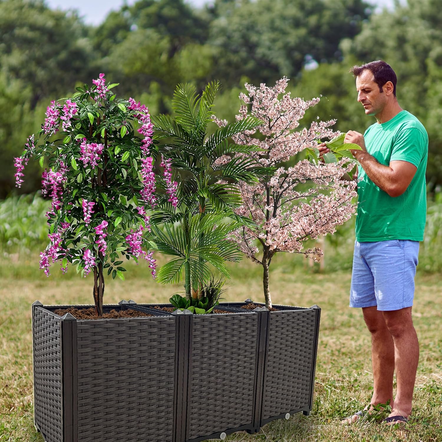 • 🌻【Durable Outdoor Growth Box】Our elevated planter boxes are made of reinforced PP material with a rattan pattern that is lightweight, high load bearing and reusable.