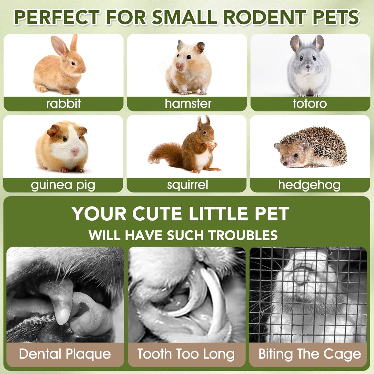 • Rodents' Best Chews: Guinea pigs treats are molded at high temperature to ensure the firmness of the cake and play a better role in molaring. Get them into the habit of chewing to protect pets' teeth and prevent damage and bite to your furniture and rugs