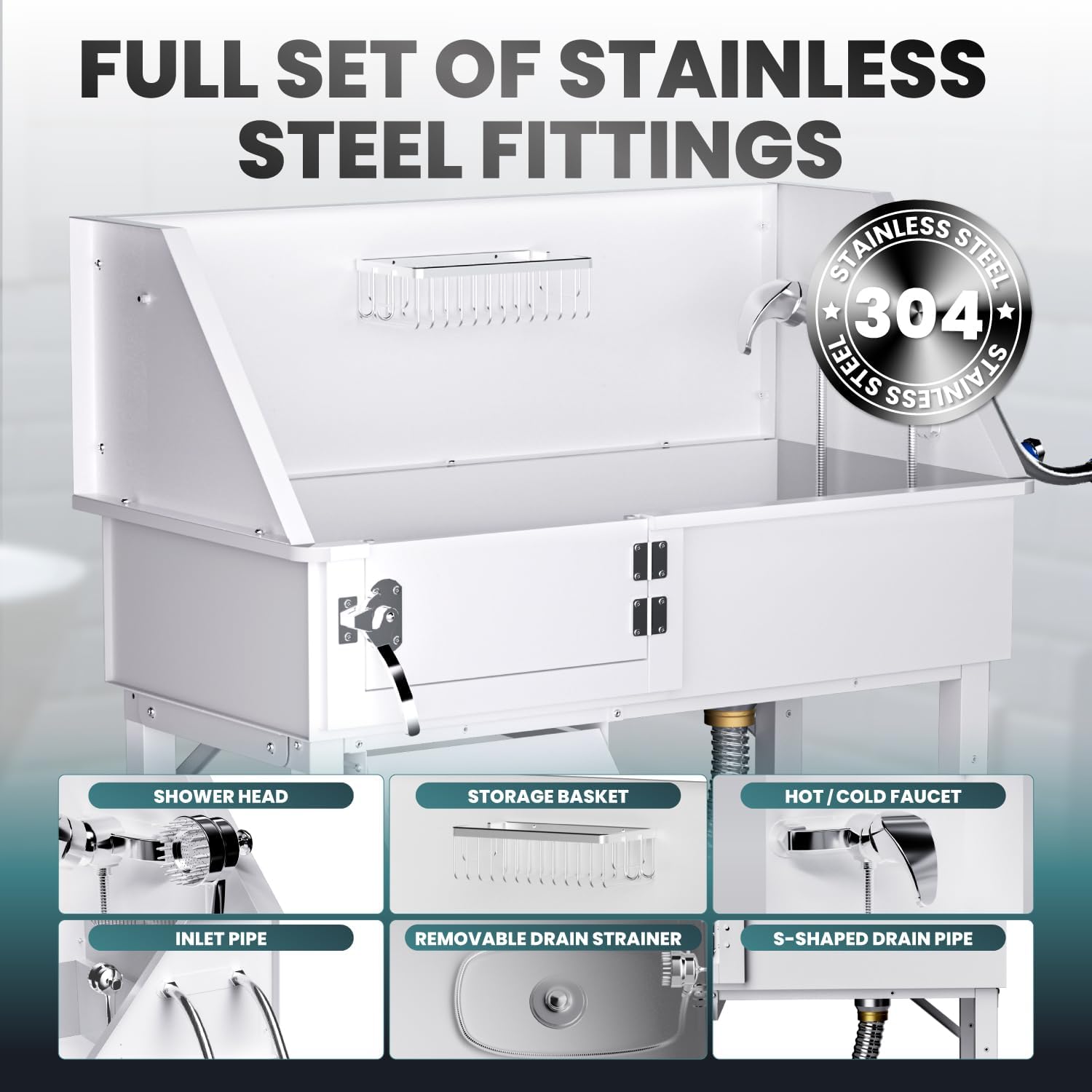 • The DYTREND dog washing station features a stainless steel surface coated with a white powder finish, offering enhanced protection against scratches and ensuring the inner steel stays intact. This finish not only improves durability but also provides a sleek, modern look that seamlessly complements various furniture styles