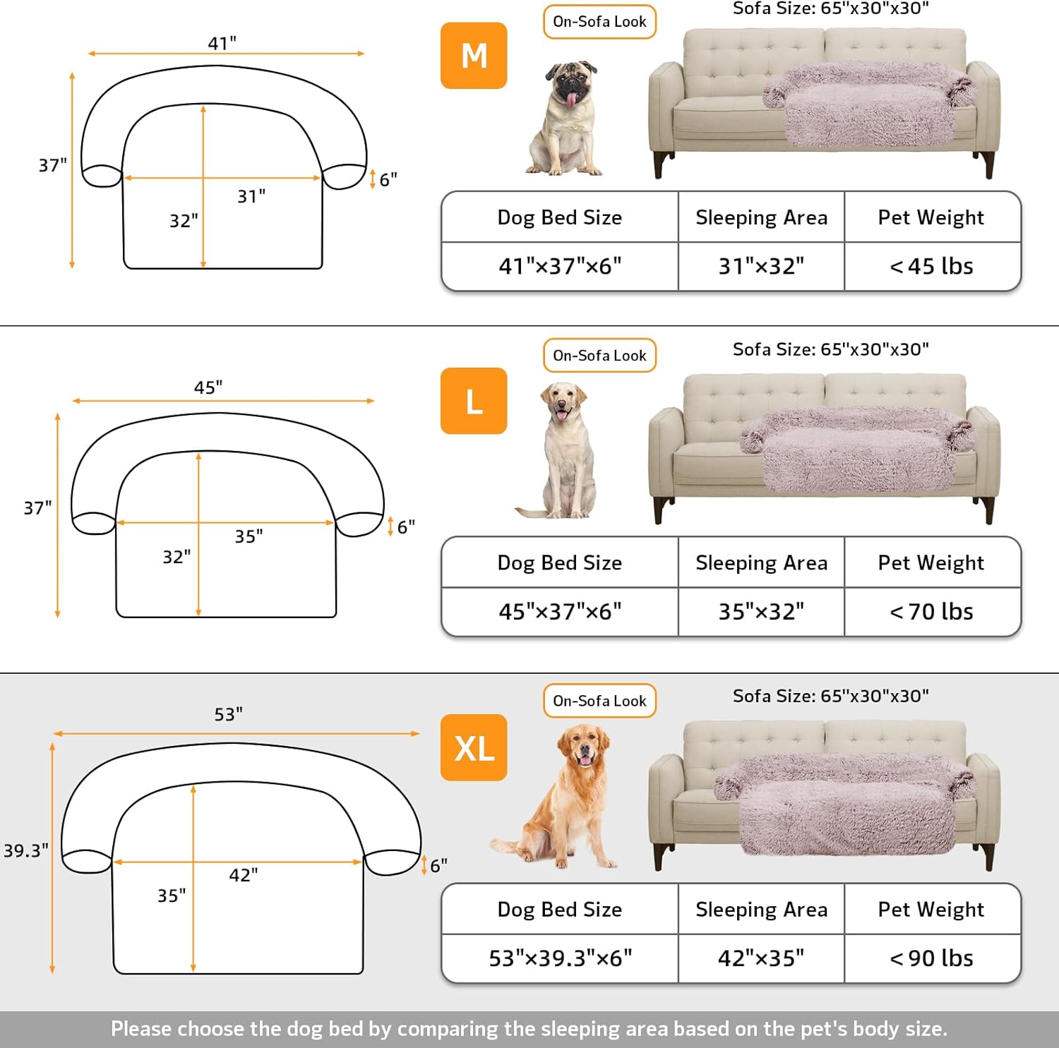 • 【Multiple Size Selection】The couch pet bed has 5 sizes for you to choose from. M: 41"x37" dog bed for medium dogs. L: 45"x37" dog bed for large dogs. XL: 53"x39.3" dog bed for large dogs. We have enlarged the sleeping area for pets to give dogs more space.