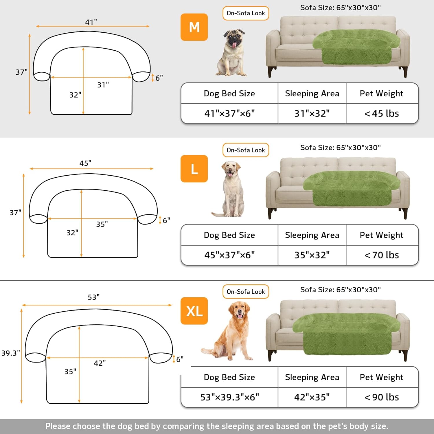 • 【Multiple Size Selection】The couch pet bed has 5 sizes for you to choose from. M: 41"x37" dog bed for medium dogs. L: 45"x37" dog bed for large dogs. XL: 53"x39.3" dog bed for large dogs. We have enlarged the sleeping area for pets to give dogs more space.