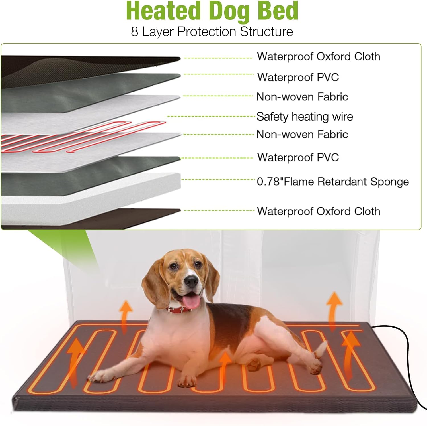 • Safe Heating System: UL-tested 12V heating pad with adjustable temperature (89-116°F), time settings (2, 4, 6 hours),preventing overheating or chilling, ensures consistent warmth. 6.5 ft chew-resistant cord adds an extra layer of safety