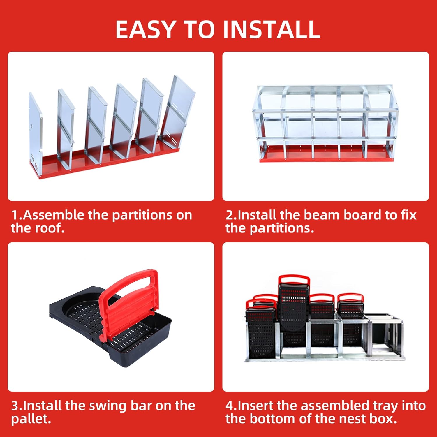 • EFFICIENT EGG COLLECTION SYSTEM: Featuring a gentle incline, our innovative design allows eggs to roll into a conveniently accessible tray. This eliminates the need to reach into the nesting area, streamlining your egg collection routine and ensuring a clean, hassle-free harvesting experience.