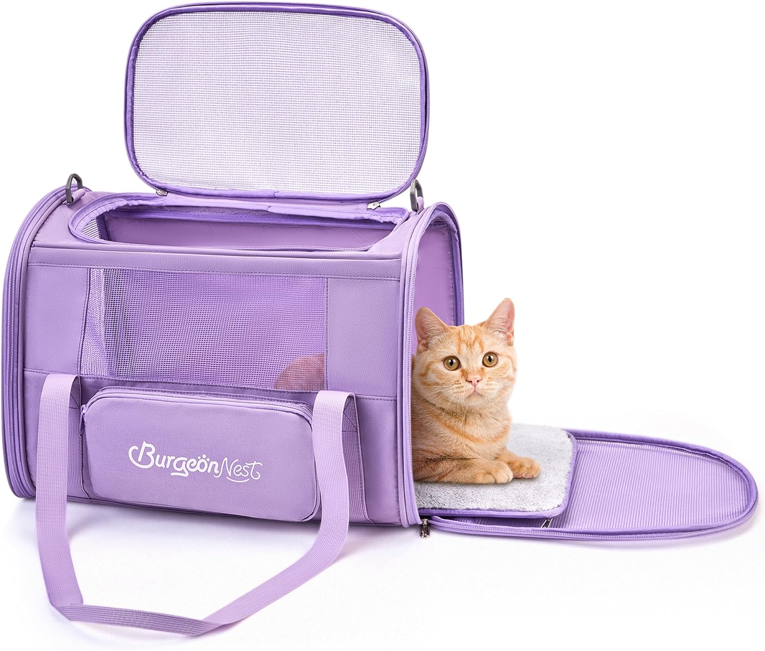 • Well-made Large Cat Carrier: With upgraded memory metal for sturdy frame, this cat carrier for 2 cats does not collapse. Made of breathable fabric, BurgeonNest cat carrier has 3 doors to open, it is more convenient to put your dog cat in or out. Plush cushion with sturdy bottom inserts ensures comfortable environment for pets.