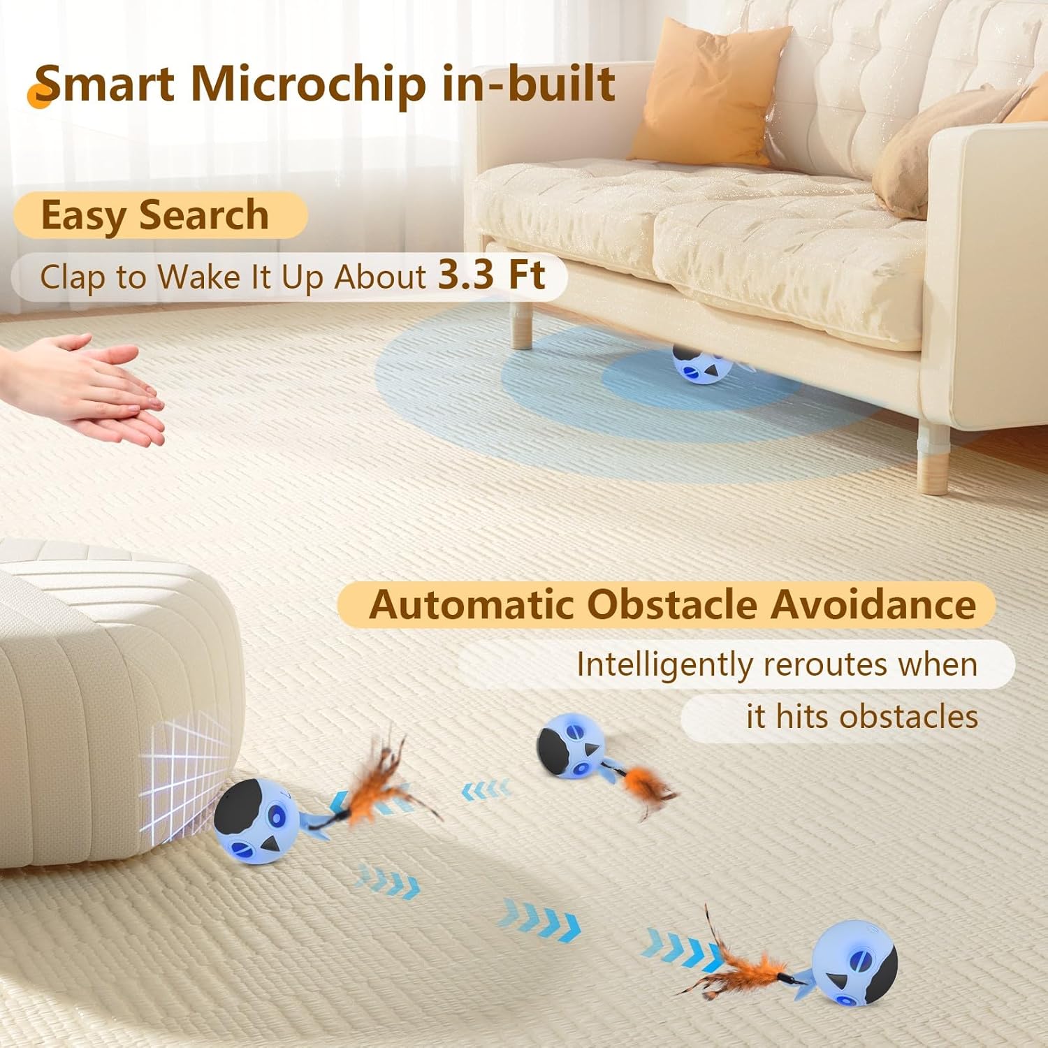 ORSDA Cat Toys, Interactive Cat Toy for Indoor Cats, Automatic Moving Ball Bird for Indoor Adult Cats Kitten Toys All Breeds, Fast Rolling Motion Activated Chirping Stimulating Light, 2 Feather Refill