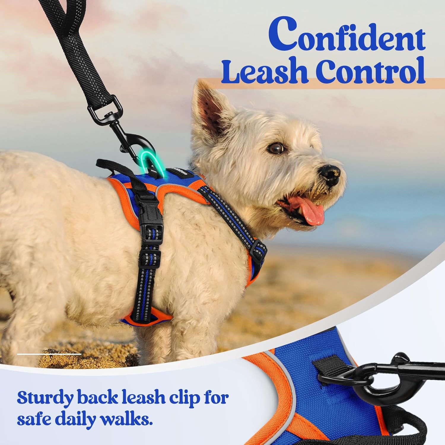 rabbitgoo Dog Harness No Pull with 2 Leash Clips, Adjustable Soft Padded, Reflective Oxford No Choke Pet Vest with Easy Control Handle for Puppy, Blue & Orange, XS