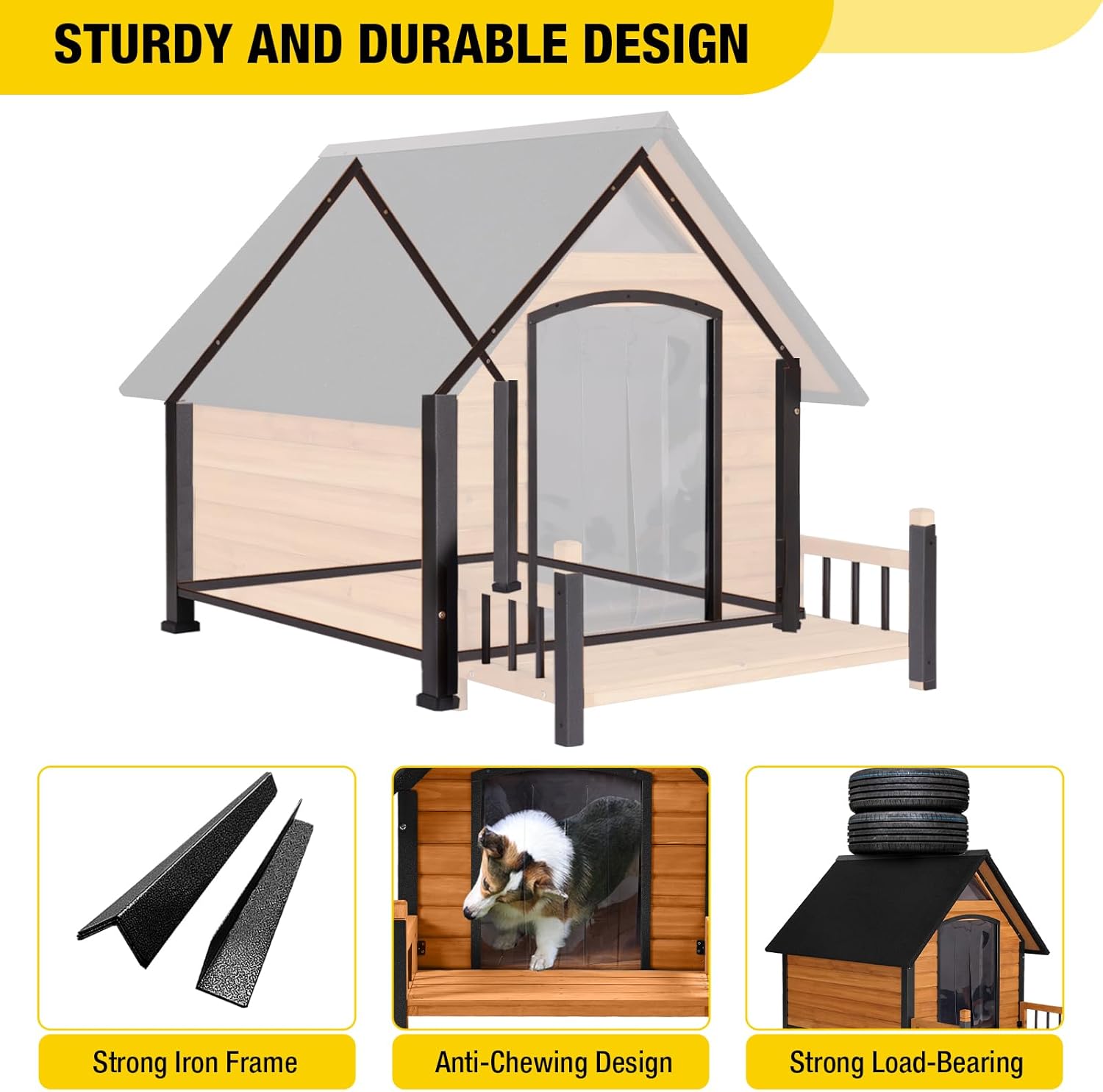 • Extra Large Space: 50.8"D x 37.4"W x 37.2"H. The spacious porch and its elevated, roofless surface will provide a sunlit, warm place that expands the dog house by a long shot. Your pet will adore the fresh air and extra outdoor space