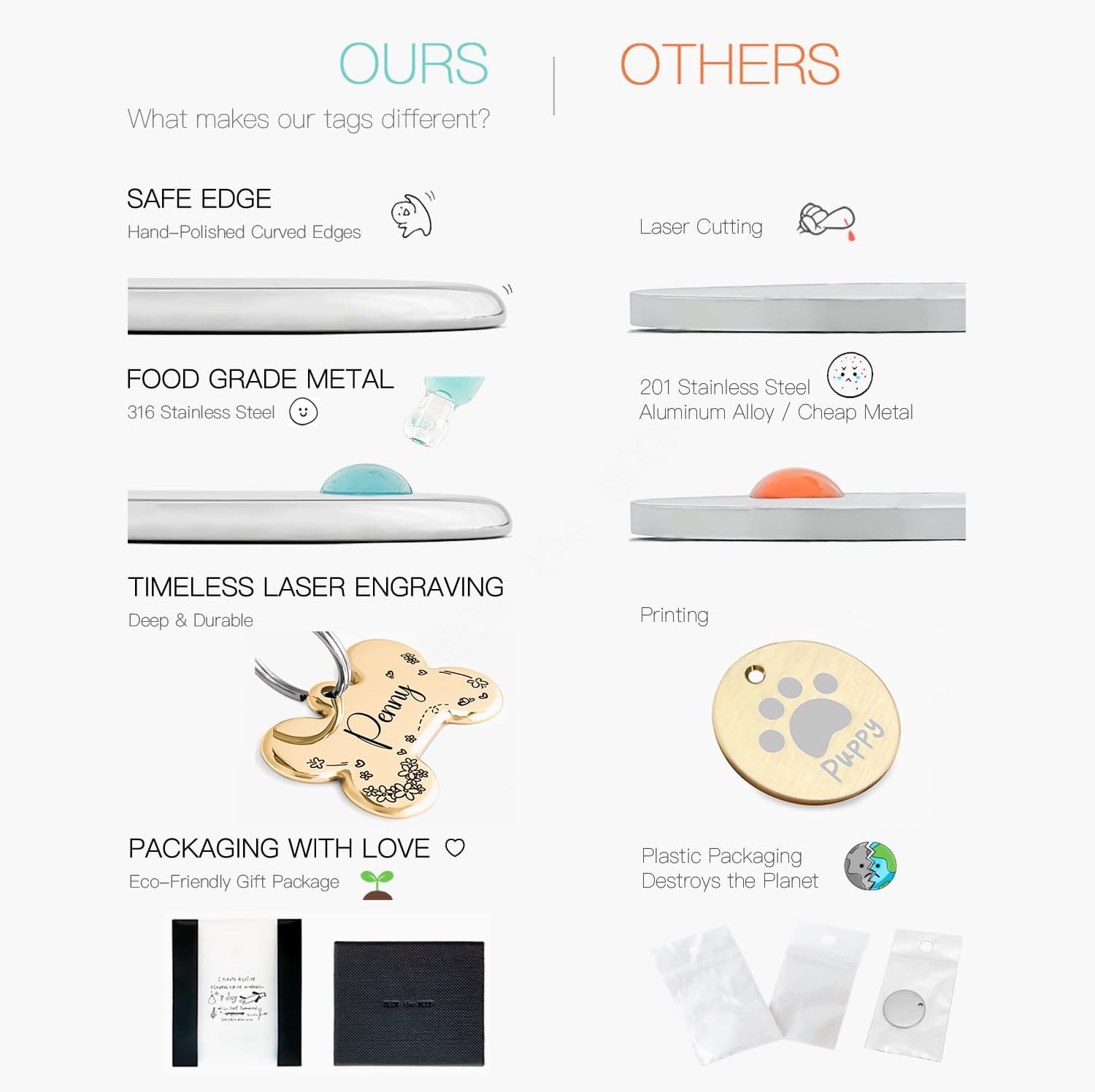 • Our pet tags are both beautiful and practical. They can not only help pets prevent getting lost, but also have multiple uses.