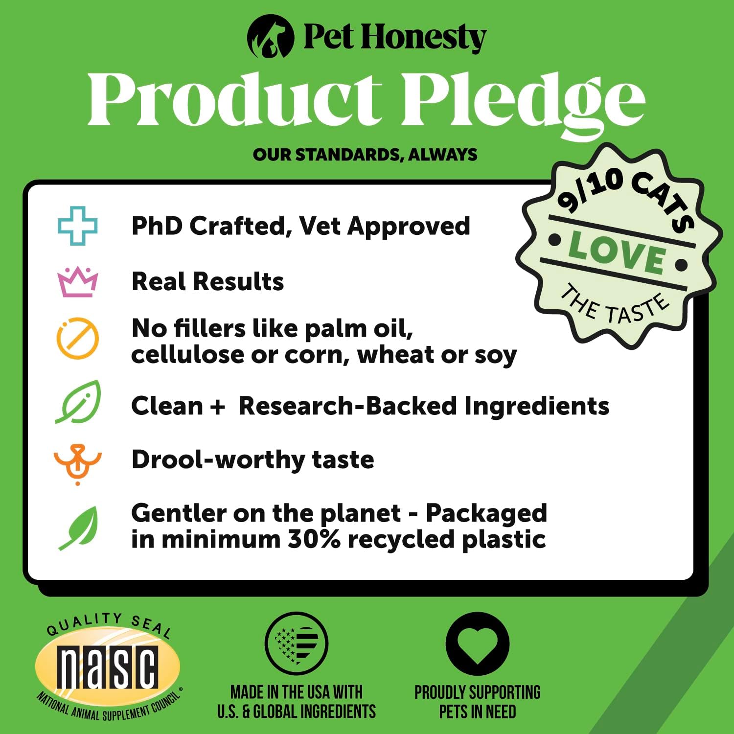 • THE HONEST DIFFERENCE: Our products are made with clean, science-backed ingredients for results you can trust, & with no fillers, artificial preservatives, colors, or flavors, you'll have no doubt your dog is getting the best. Proudly supporting pets in need nationwide & using recycled plastic in our packaging, there's also no doubt that we're committed to doing our best. -- All products are made in the U.S.A. | NASC Member Company