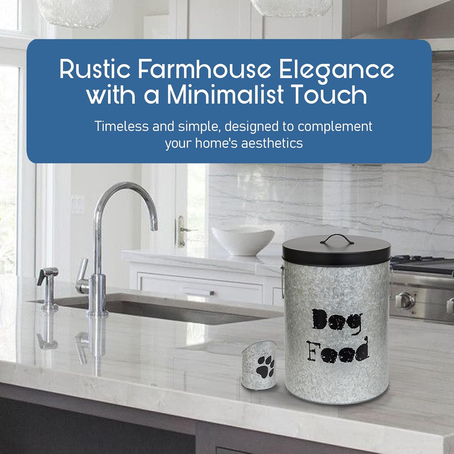 Small Dog 20lb Pet Food Storage Canister Dog Bin with Scoop – Durable & Airtight for Freshnesss, Minimalist Design & Recyclable, Small Metal Container for Kitchen Countertop