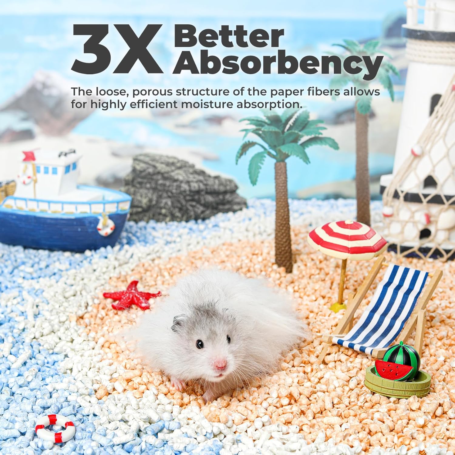 • 3x Better Absorbency – The loose, porous structure of the paper fibers allows for highly efficient moisture absorption. When spread 2-3 cm thick at the bottom of the cage, it effectively absorbs moisture and neutralizes odors, keeping your pet's living space dry and fresh.