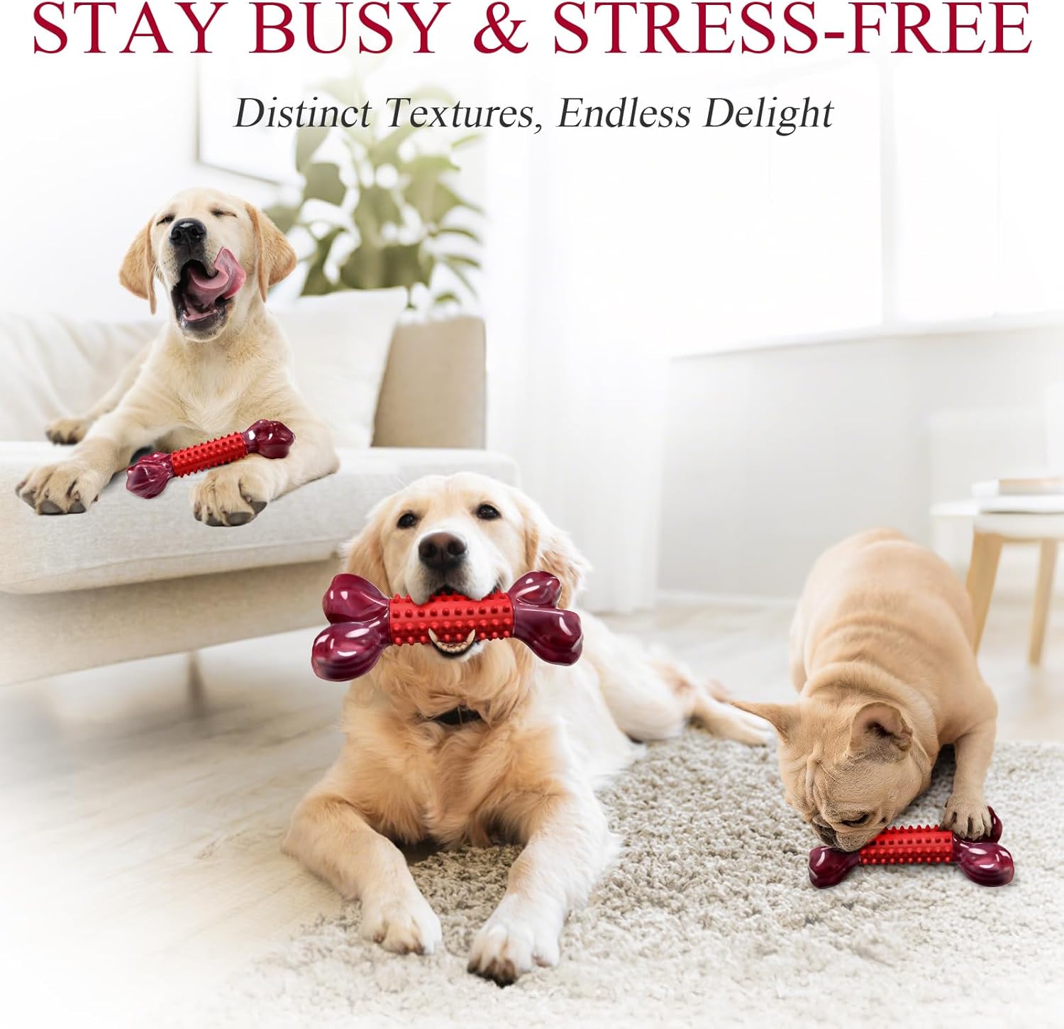 - DOG TOYS TO KEEP THEM BUSY: Dogs experience anxiety and boredom much like people do, even engage in destructive behavior. You can disrupt that cycle and make them happy and stress-free with these flavored dog chew toys. Let your furry friend enjoy hours of fun while you focus on what mattersโwithout worry.