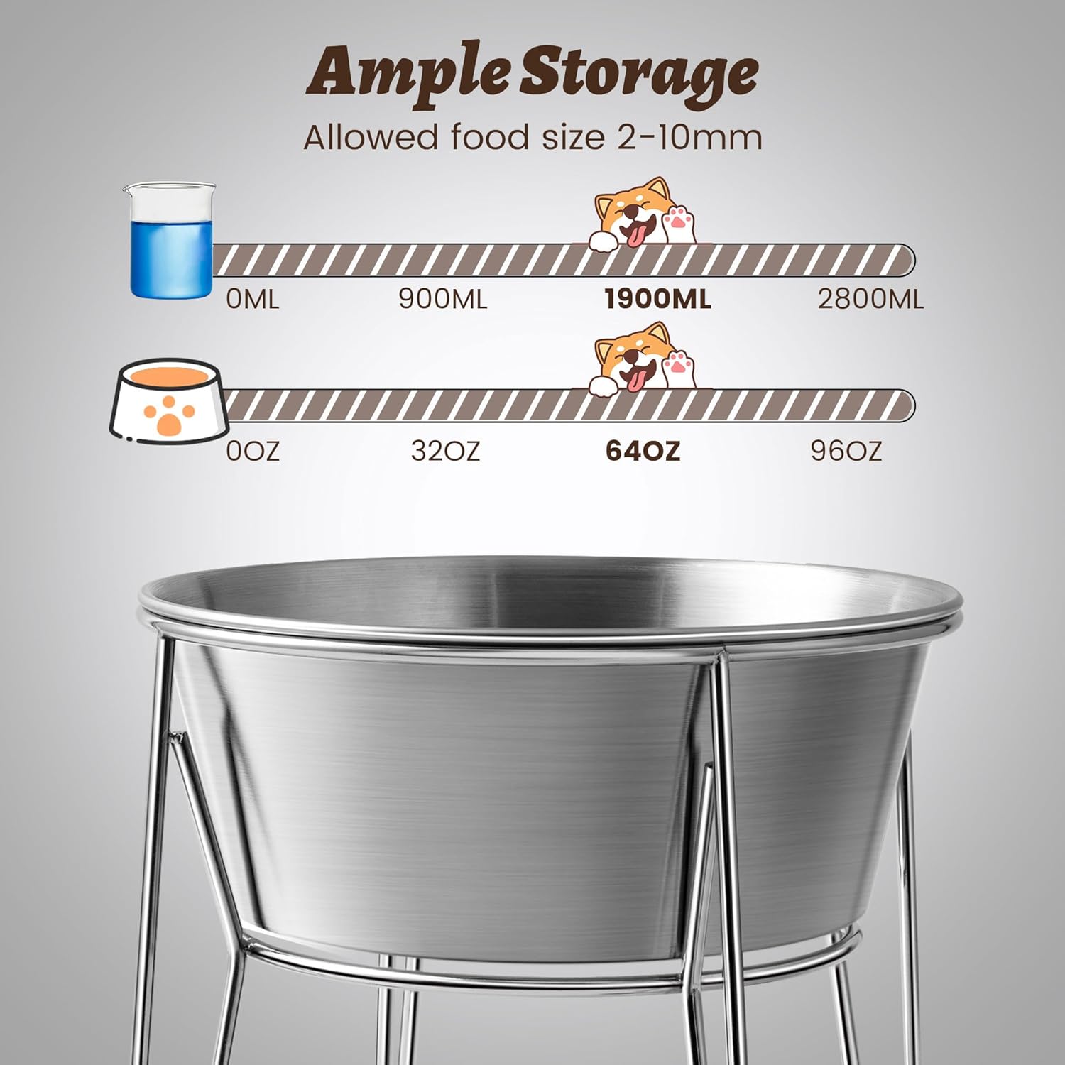 • Large Capacity & Wide Bowl : Each bowl holds 1.9L (8 cups) of water or food, with a 7.8 inch (20cm) wide opening for easy access, perfect for medium to large dogs.