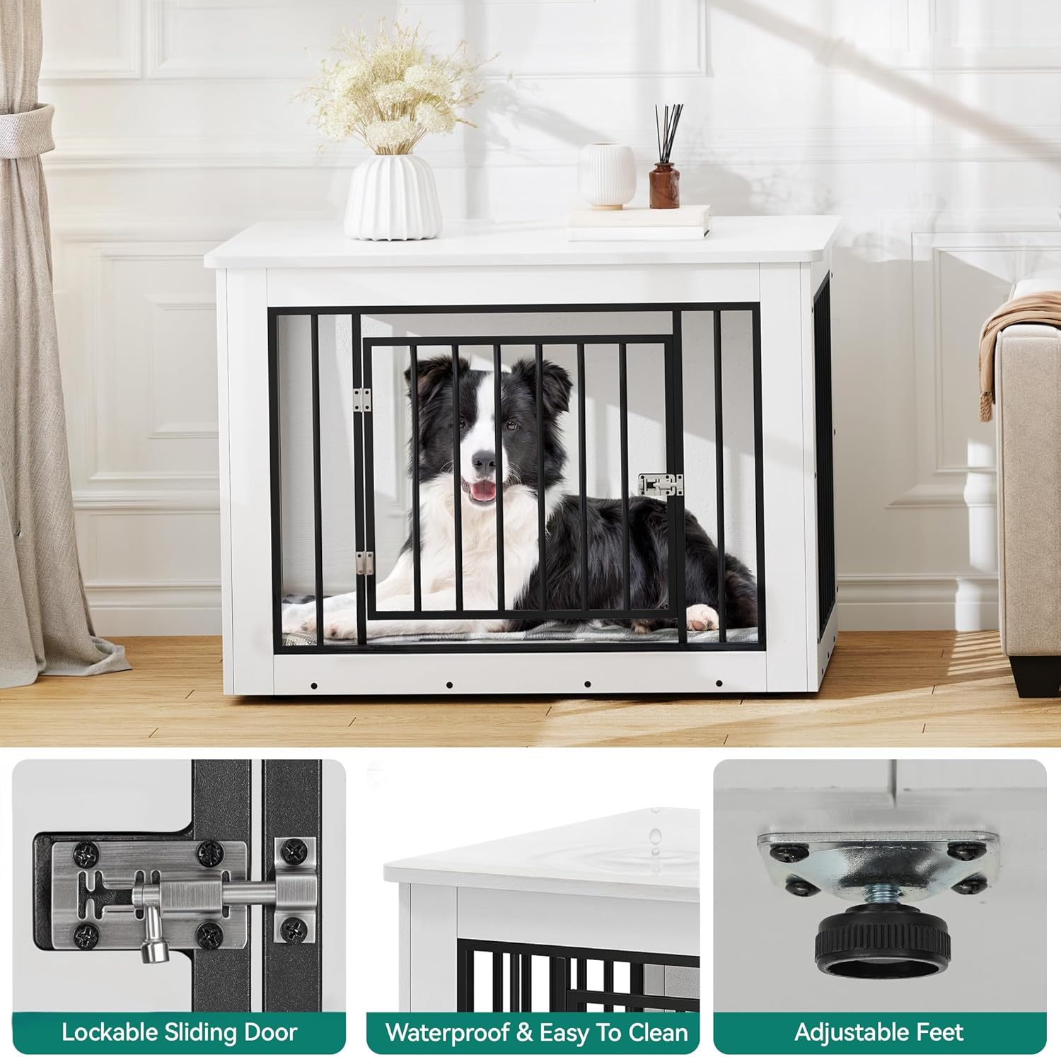 • 2-in-1 Design: The large dog kennel serves as a functional side table that also doubles as a cozy resting space for your pet and stylish furniture piece; Its innovative design saves space and adds a unique element to your home decor, blending utility and style
