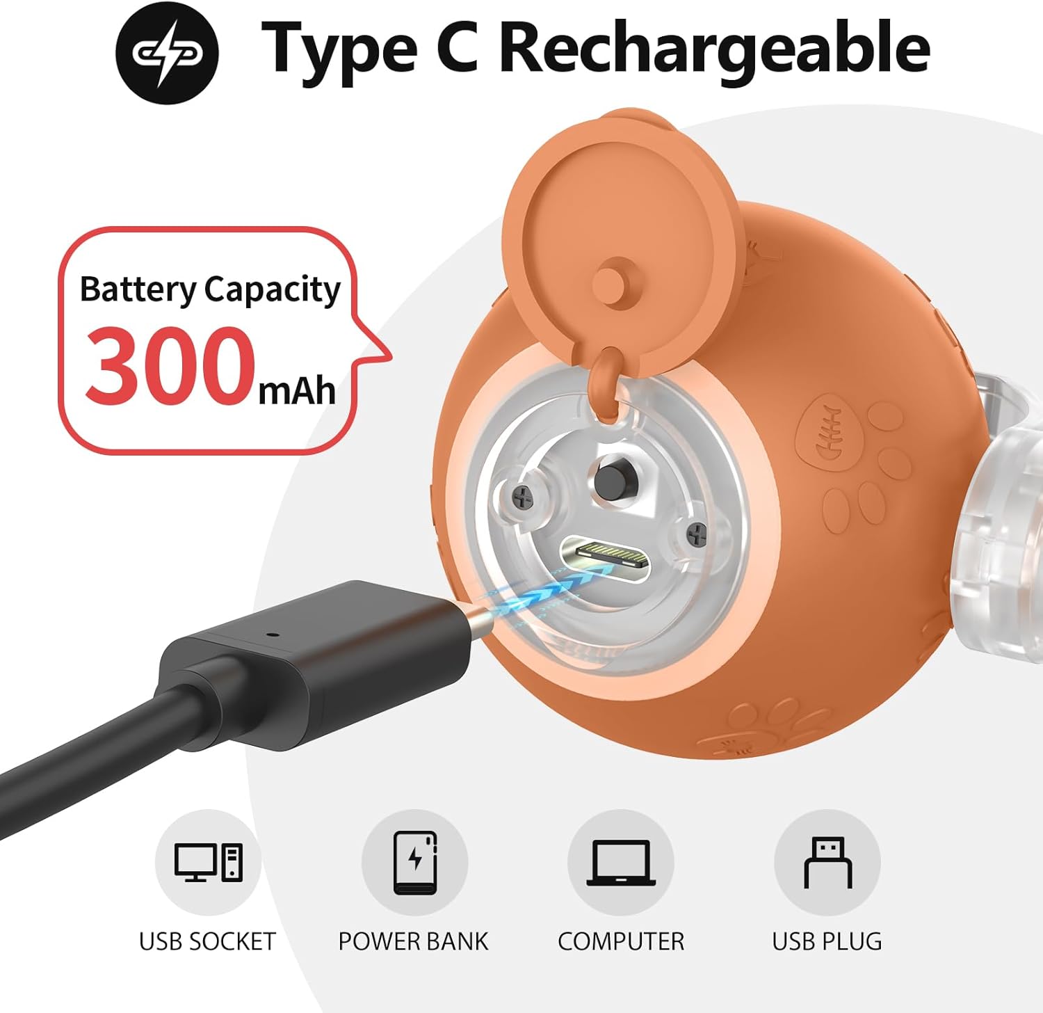 • USB Rechargeable: This interactive cat toy has a built-in rechargeable battery, and the charging port is located inside the switch button cover. Open the cover and easily charge it using the included USB cable.