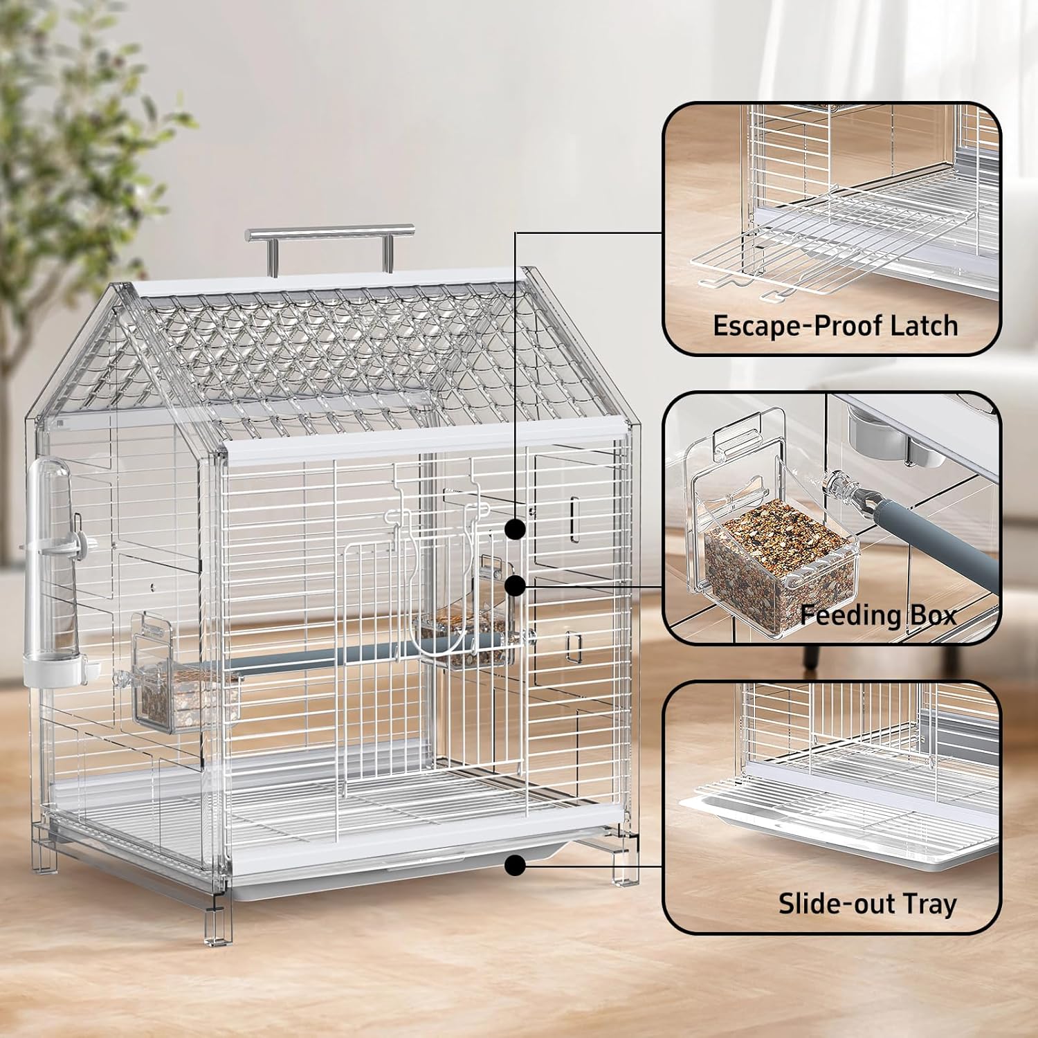 - 【Easy to Clean】The cage bottom is designed with a slide-out tray that can be easily removed for cleaning, making maintenance a breeze. The grille between the bird and the tray prevents your pet from stepping directly on their waste.