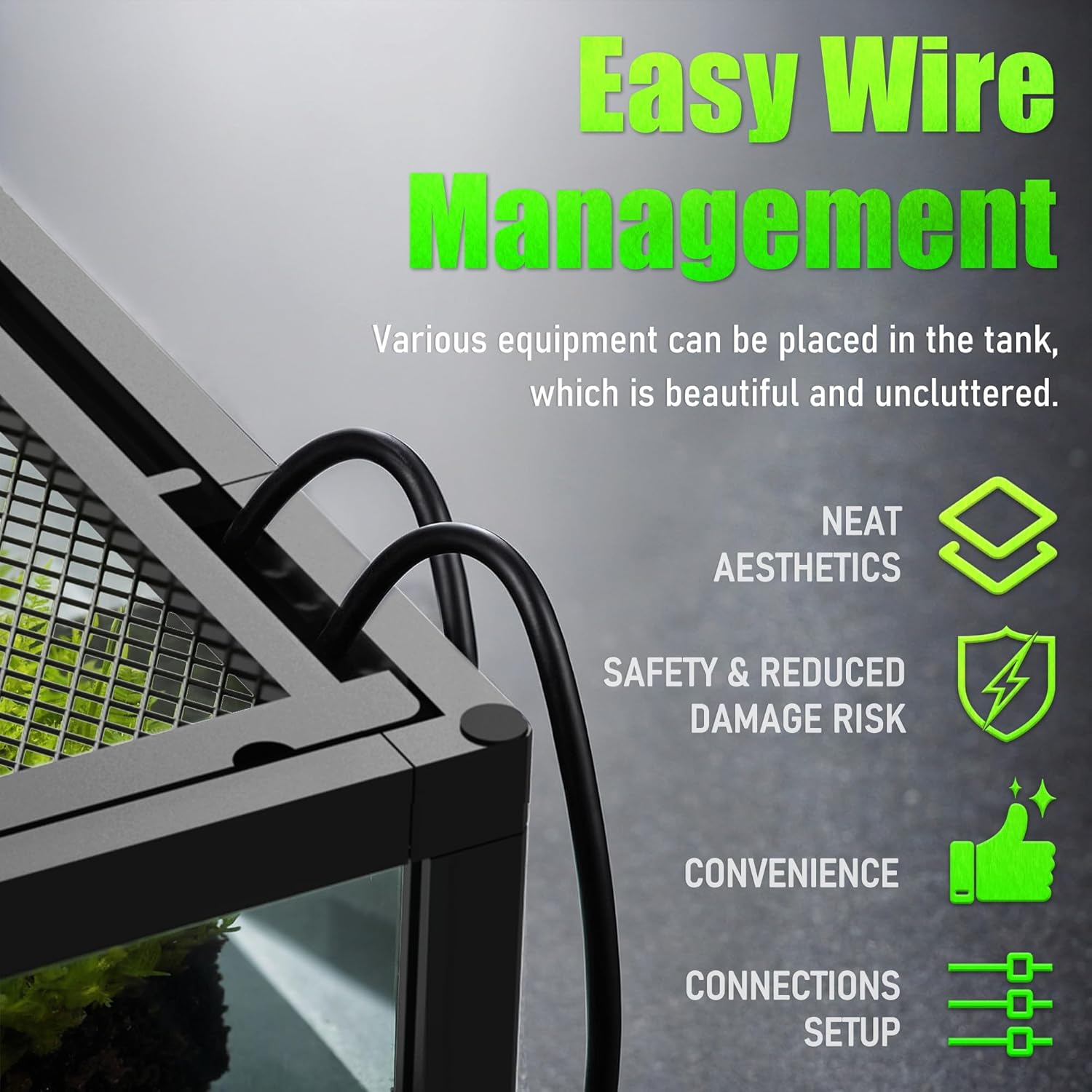 • 【Top Cable Management】 Our top cable storage design includes four wire or tube entrances, allowing for the easy installation of various equipment such as lights and heaters, keeping the setup organized and preventing wire strain.