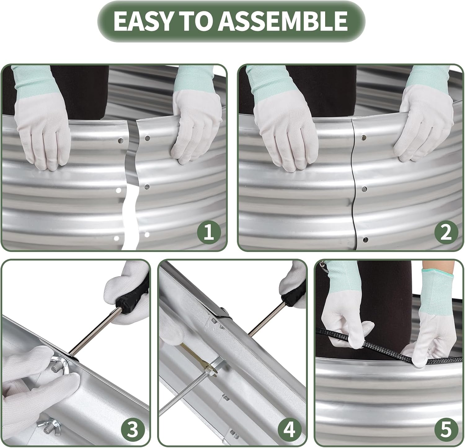 • 【High-Quality Materials & Durable】 Made from 0.5mm galvanized metal panels with double-layer anti-corrosion galvanization, this outdoor raised garden bed features a robust oval-shaped design for added strength and durability. Resistant to rust and corrosion, it provides a long-lasting gardening solution that can be reused for many years, ensuring a sustainable and reliable space for your plants to thrive