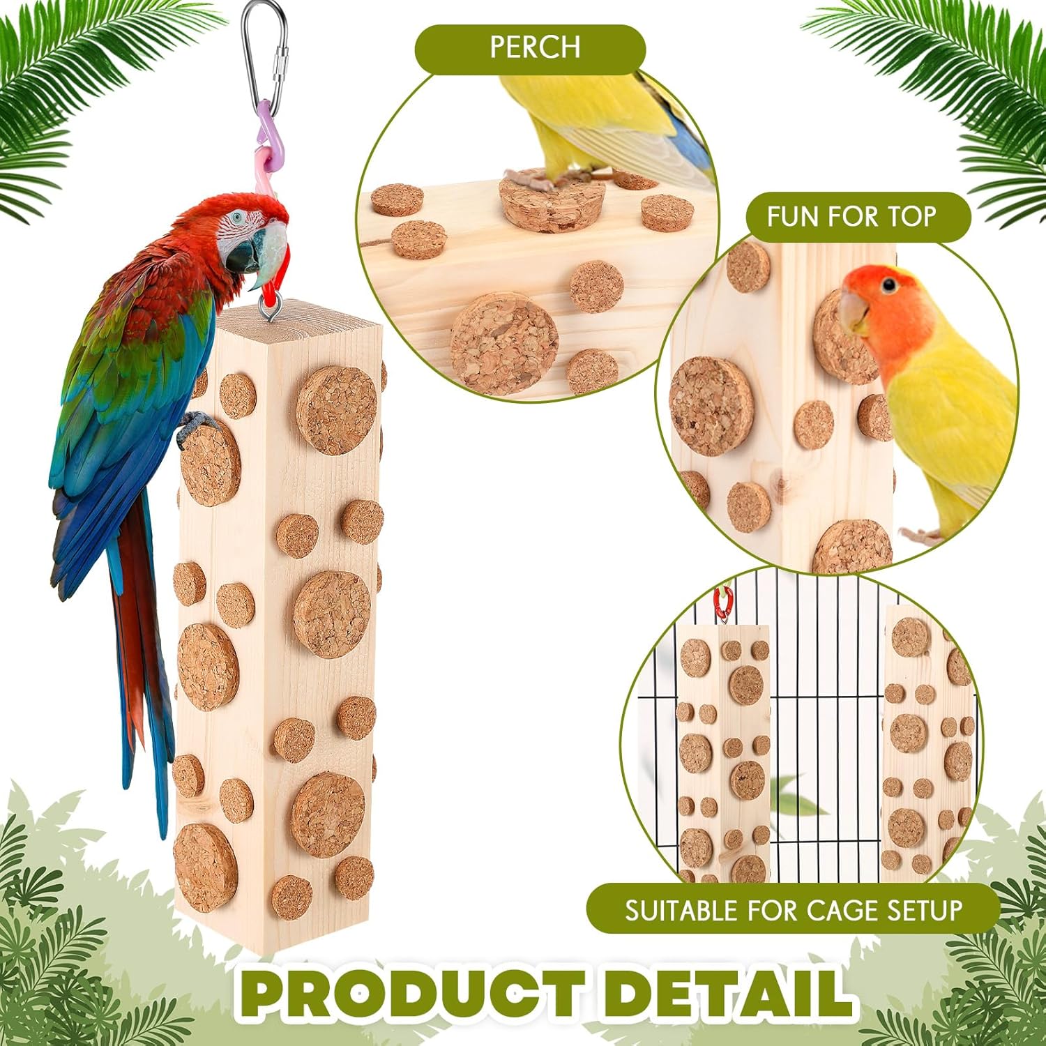 • Material Safety: the wooden foraging toys are handmade of solid wood, and the corks are made of oak, which makes it safe for your bird to gnaw and chew; Note: the oak corks should not be washed or exposed to water