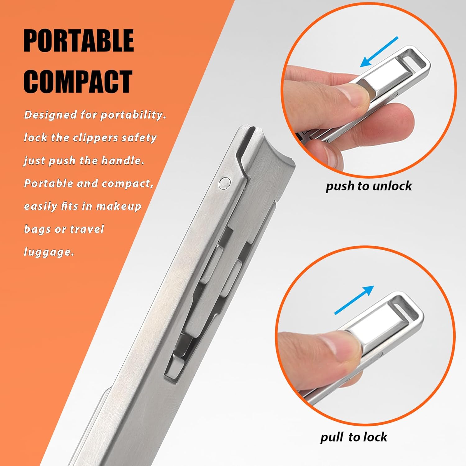 • Portable Compact - Designed for portability. The thinnest part of this nail clipper is just 0.23 Inches, lock the clippers safety just push the handle. Easily fits in makeup bags or travel luggage.