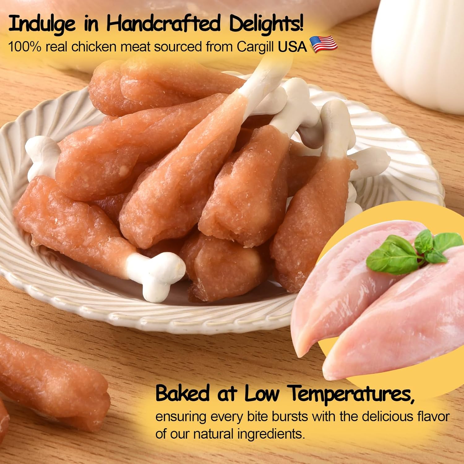 • RAWHIDE-FREE CHEWS - Chicken contains soft calcium bones and has a delicious and chewy taste, and it also helps dog's calcium supplementation.