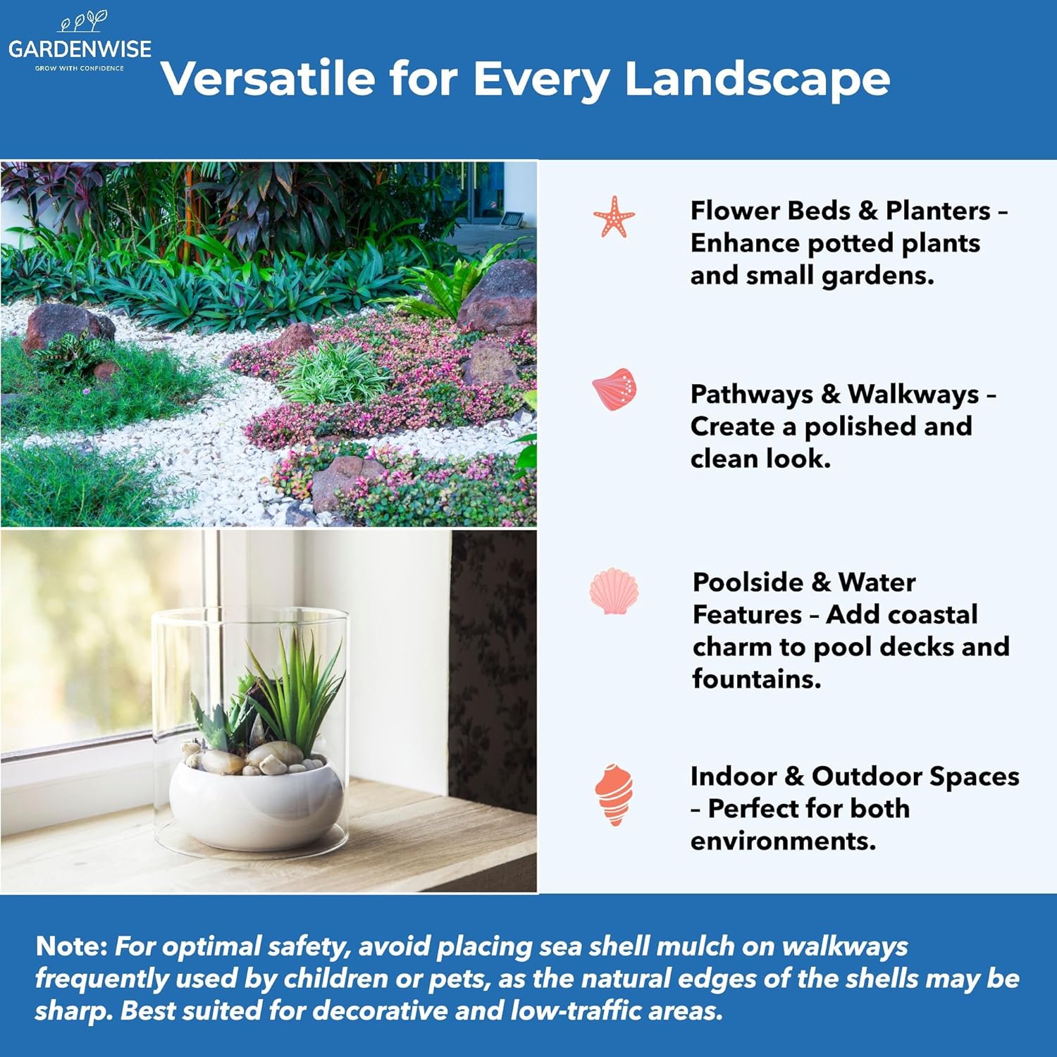 • Pest-Resistant and Safe: Sea shell mulch does not attract ants, termites, or other pests, providing a long-lasting, clean solution for landscaping without the use of chemicals.