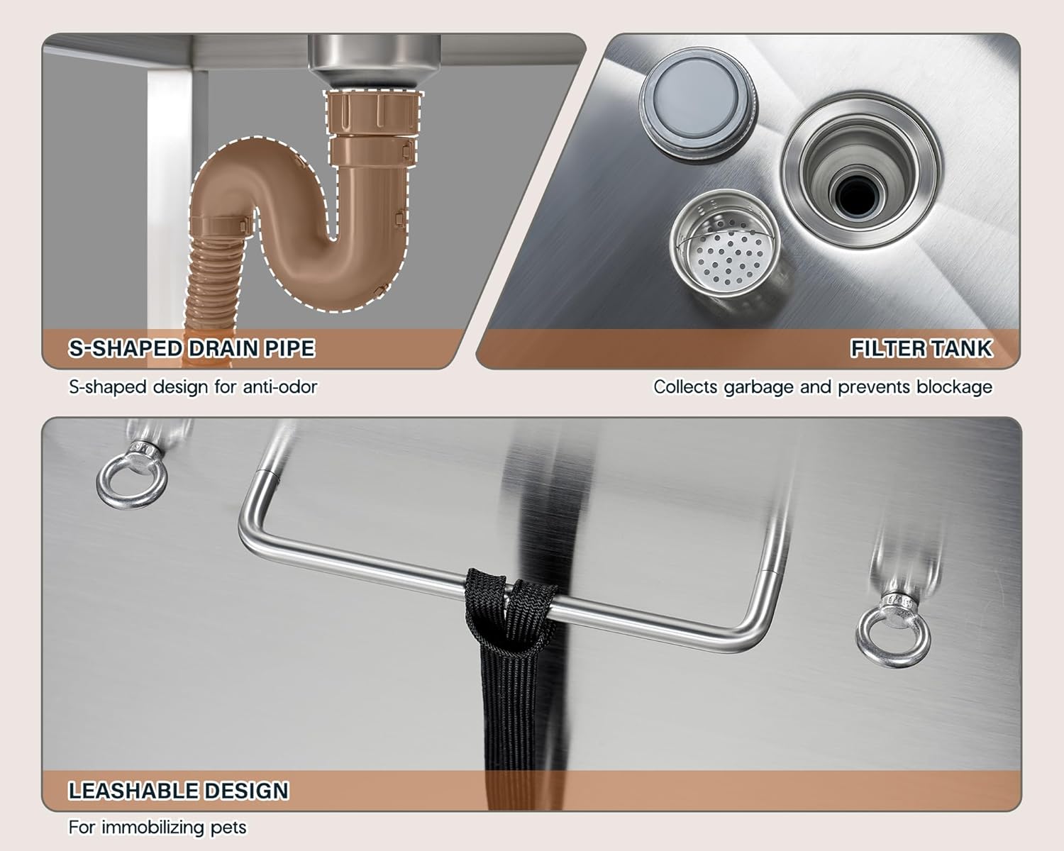 • Durable and Long-Lasting: The Dog Wash Tub is crafted from high-quality 304 stainless steel to ensure superior durability. Easy to clean for quick disposal of post-bath residue.